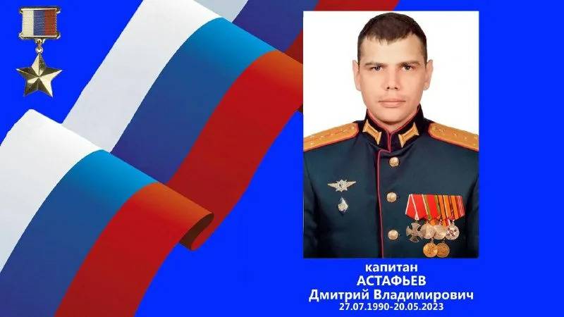 Звание Героя Российской Федерации присвоено командиру мотострелковой роты капитану Дмитрию Владимировичу Астафьеву за героизм, мужество и отвагу, проявленные при исполнении воинского долга посмертно. В специальной военной операции капитан Астафьев принимал участие с 24 февраля 2022 года в должности командира мотострелковой роты отдельной гвардейской мотострелковой бригады Северного флота. Погиб в бою 20 мая 2023 года. Получив тяжелое ранение, он продолжал руководить личным составом. Отдал приказ на перегруппировку сил и, чтобы выиграть время, вызвал огонь артиллерии на себя, пулеметным огнем прикрывая отход своих бойцов.