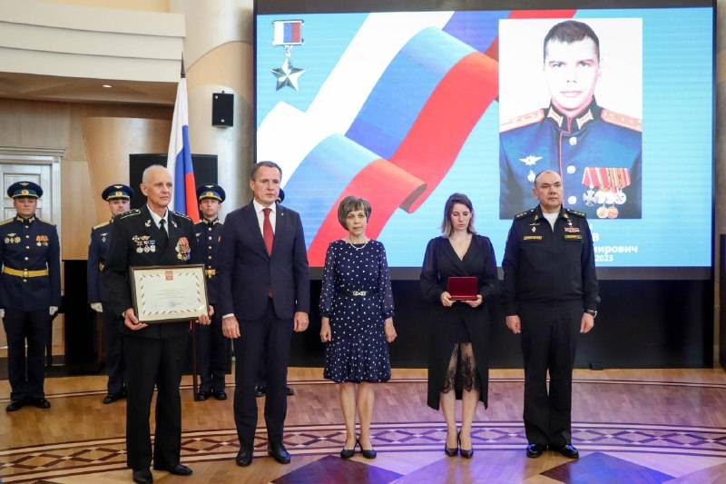 Церемония передачи высшей государственной награды родным героя состоялась в зале Белгородской государственной филармонии. На церемонии присутствовали родные, близкие и сослуживцы Дмитрия Астафьева. Награду семье передали командующий Северным флотом адмирал Александр Моисеев и губернатор Белгородской области Вячеслав Гладков. Капитан Астафьев – истинный сын своего Отечества. Память о нём навсегда останется в героической летописи России и Белгородчины.