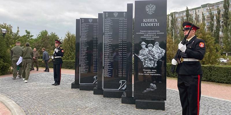 В сквере ВДВ города Старый Оскол открыли гранитный мемориал «Книга памяти». На монументе в виде раскрытых страниц книги высечены имена 330-ти старооскольцев, погибших в Афганистане, Чечне и в зоне СВО. На титульном листе изображены трое бойцов - собирательный образ воинов разных поколений.
