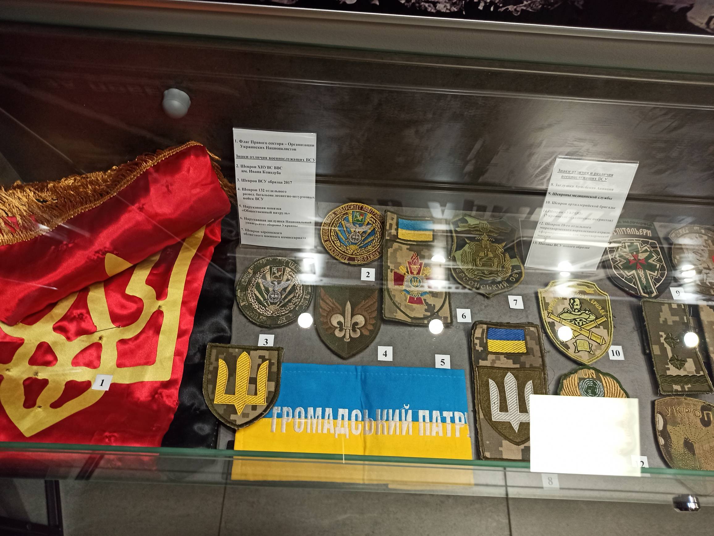 Среди экспонатов выставки можно увидеть предметы, привезенные из Донецкой и Луганской народных республик, с освобожденных территорий Украины: документы и трофейная нацистская символика украинских отрядов специального назначения, гранатомёт РПГ-75, американский ПЗРК «Стингер» и др.