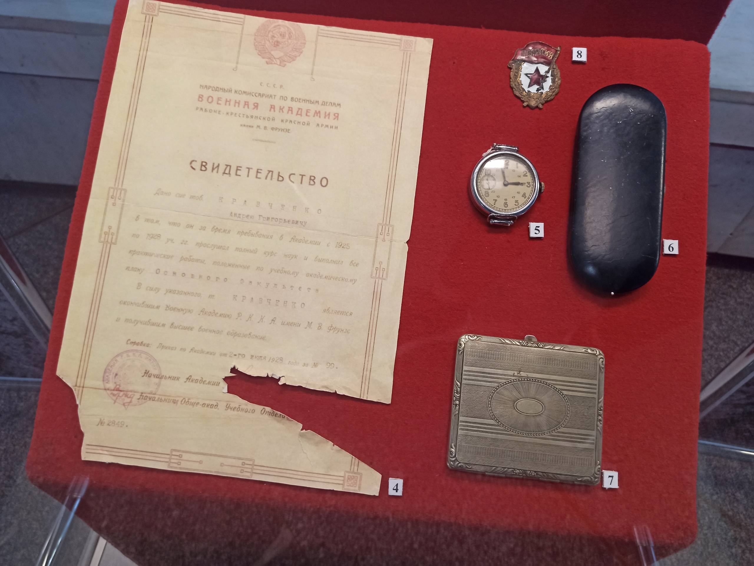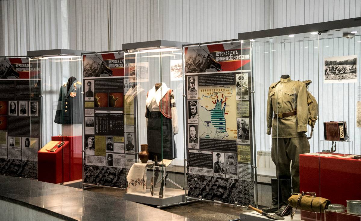 В экспозицию вошли более 250 предметов из фондов Прохоровского музея. Это фотографии, личные вещи, награды и документы участников сражения, письма с фронта и находки поисковых отрядов. Среди экспонатов - личные вещи дважды Героя Советского Союза танкиста Андрея Кравченко, награды и документы Александра Николаева, совершившего танковый таран, мемориальные предметы, переданные Героем Советского Союза Михаилом Борисовым, подбившим семь вражеских танков за 17 минут боя. Отдельный раздел выставки посвящен военачальникам - участникам Курской битвы: Константину Рокоссовскому, Павлу Ротмистрову, Родиону Малиновскому, Ивану Коневу. Также представлены находки поисковых отрядов - осколки снарядов, мины, солдатские медальоны, фрагменты танков и самоходных орудий.