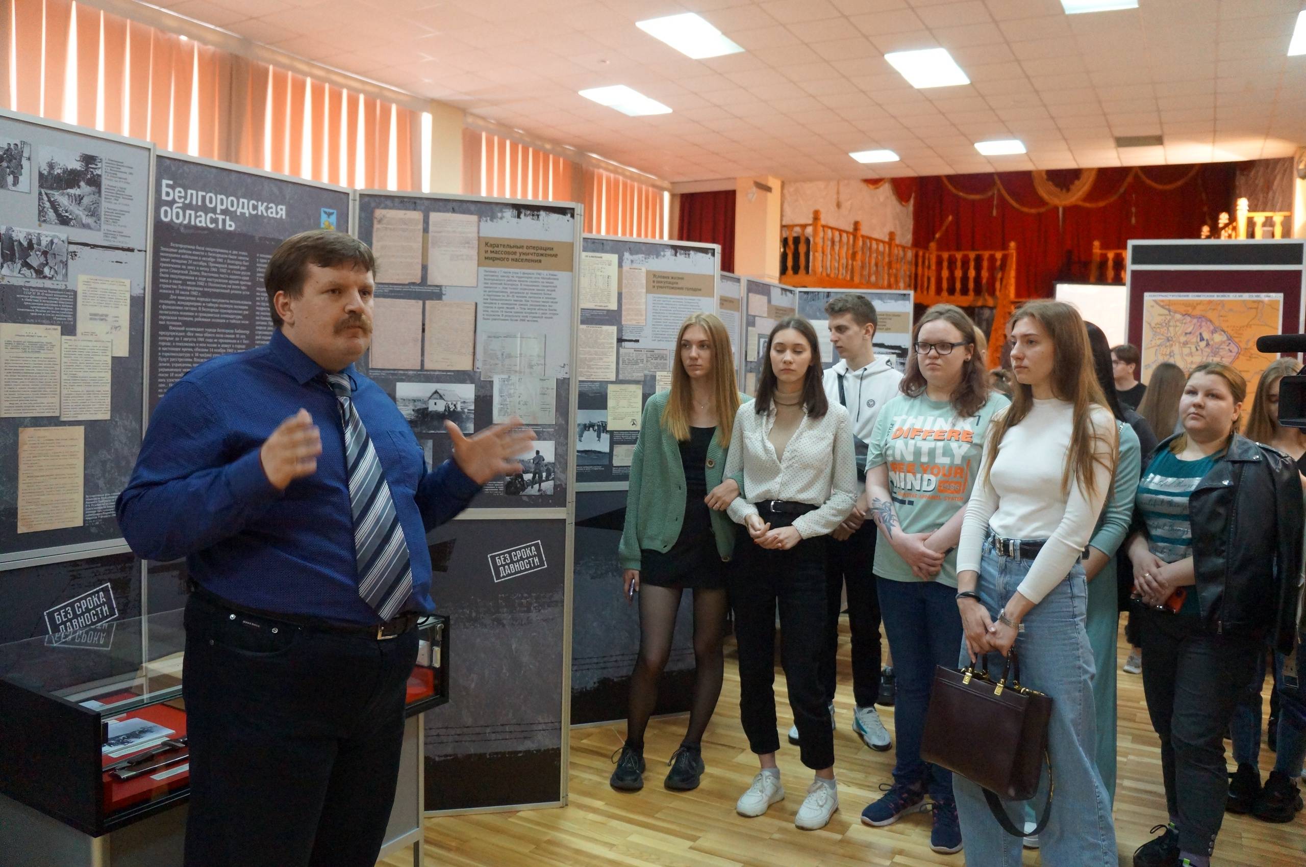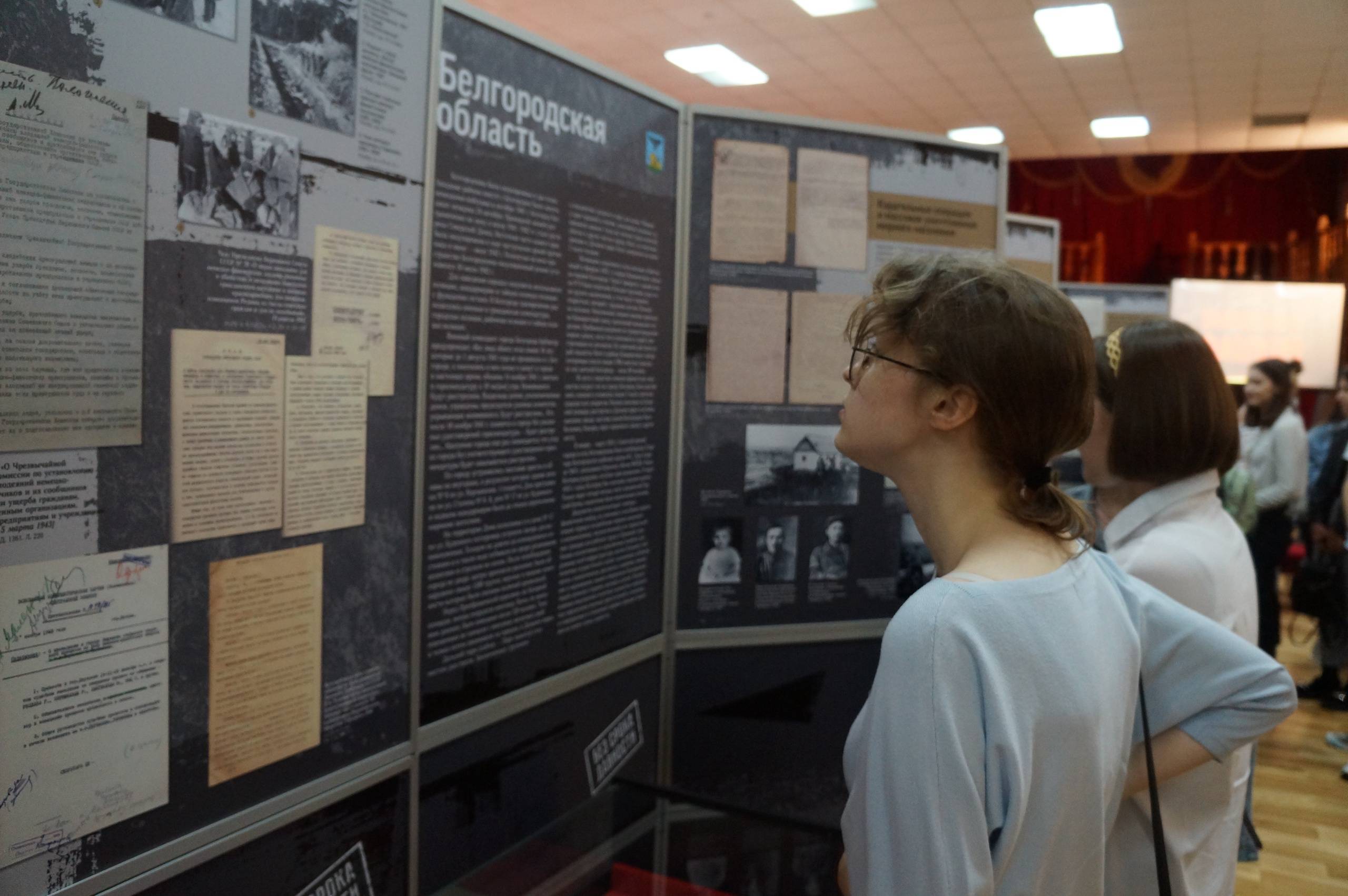 Архивные документы и фотографии экспозиции, на которых запечатлены военные преступления нацистов по отношению к военнопленным и гражданскому населению оккупированных территорий, вызывают неподдельные эмоции у посетителей. Участникам мероприятия был продемострирован документальный фильм «613 дней стойкости», подготовленный журналистами холдинга «Белгород-медиа», убедительно и эмоционально показавший карательную политику оккупантов, убийства мирного населения и другие обстоятельствах жизни Белгородчины в период оккупации.