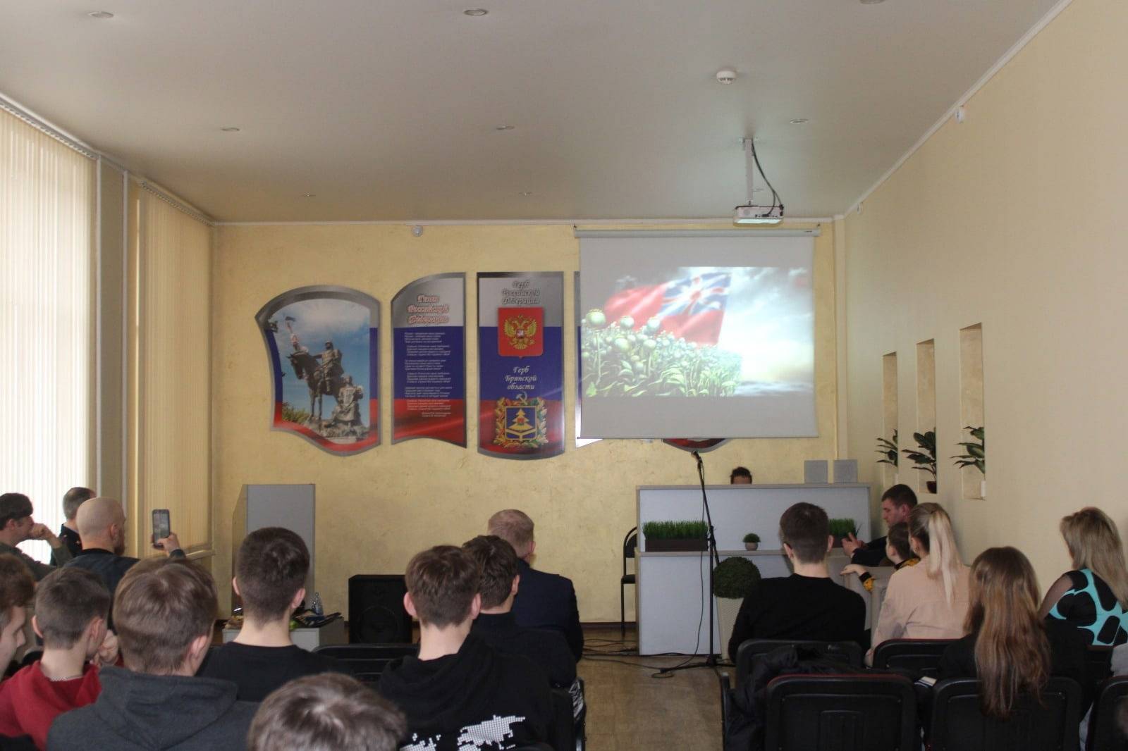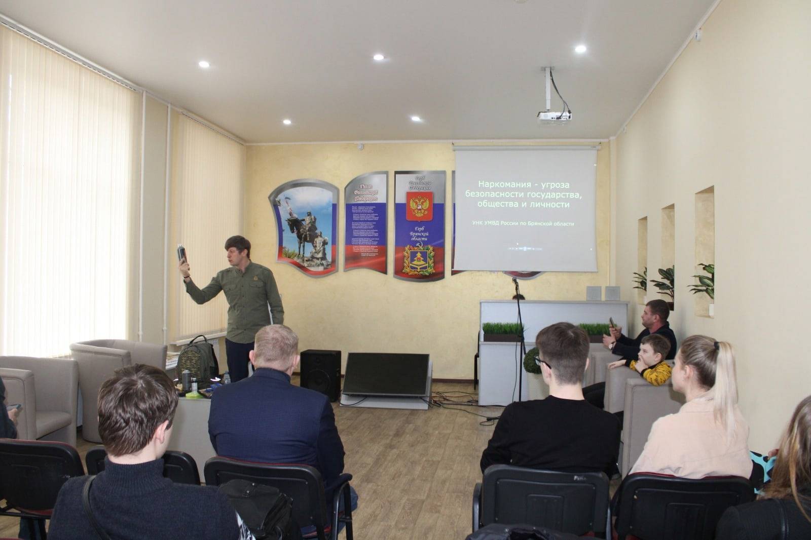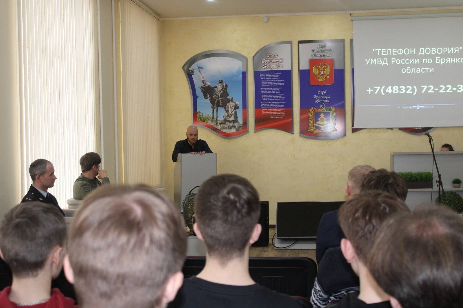24 марта в лекционном зале Брянского строительного колледжа им. Н. Е. Жуковского прошла встреча с общественными деятелями, сотрудником УНК по контролю за оборотом наркотиков УМВД России по Брянской области Пчеленком Алексеем Викторовичем. Вначале выступил концептуальный художник, член Российского Военно Исторического Общества Короткий Виталий , рассказал про две грани современного искусства и свою жизненную позицию. Алексей Викторович Пчеленок рассказал про вред запрещенных веществ. Координатор проекта "Безопасная Брянщина" Сергей Сергеевич Осипов довёл информацию о своей работе. Павел Сергеевич Романов, офицер запаса, ветеран боевых действий рассказал о спорте и своём мировоззрении. Таким образом подвели итоги встречи и обозначили будущие мероприятия, направленные на воспитание детей и молодежи, а именно про патриотический фестиваль " Твой Выбор" , куда входят цикл встреч, лекций и спортивных мероприятий, включая памятные события из истории региона.