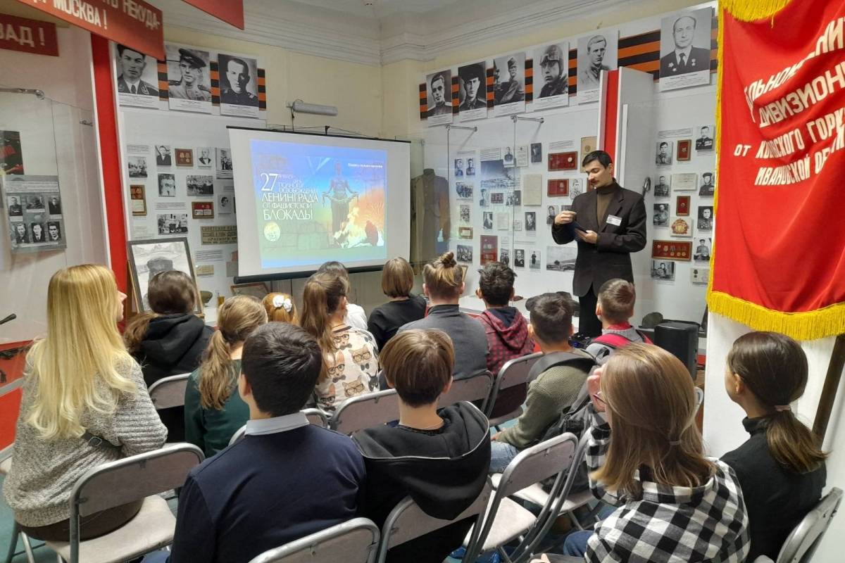 В память о 79-й годовщине полного освобождения Ленинграда от фашисткой блокады в стенах Ковровского историко-мемориального музея прошло мероприятие «Память сильнее времени», посвященная полному снятию блокады. Работники музея рассказали учащимся 6 «А» класса СОШ № 2 о тех испытаниях, что выпали на долю ленинградцев в годы войны, о беспримерном героизме людей, продолжавших борьбу с врагом с самых нечеловеческих условиях, о военных операциях, приведших вначале к прорыву, а потом и к полному снятию блокады.