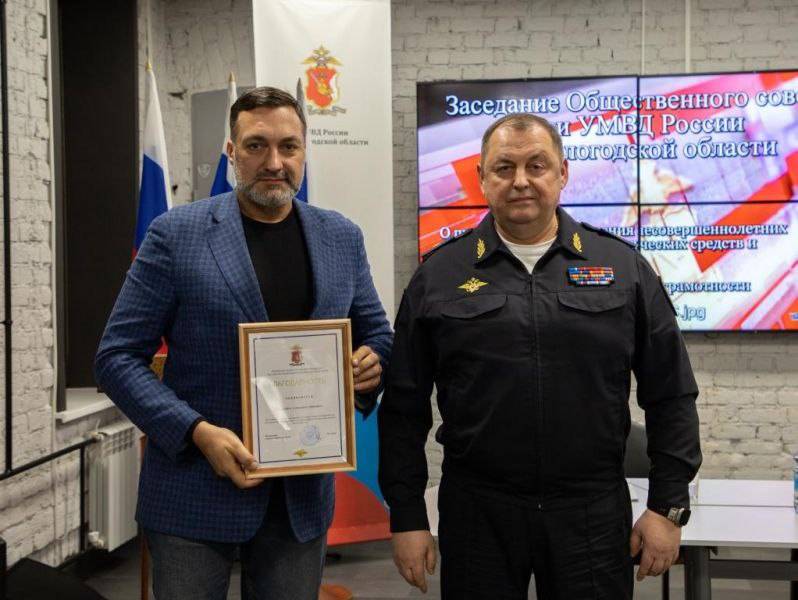 По итогам работы в 2025 году начальник УМВД России по Вологодской области вручил благодарность председателю РО РВИО в Вологодской области, заместителю председателя Общественного совета Александру Метелкину за проведение совместных мероприятий, посвященных 80-летию Победы в Великой Отечественной войне, организации занятий по военной археологии для учеников кадетских классов и активистов проекта «Движение Первых».