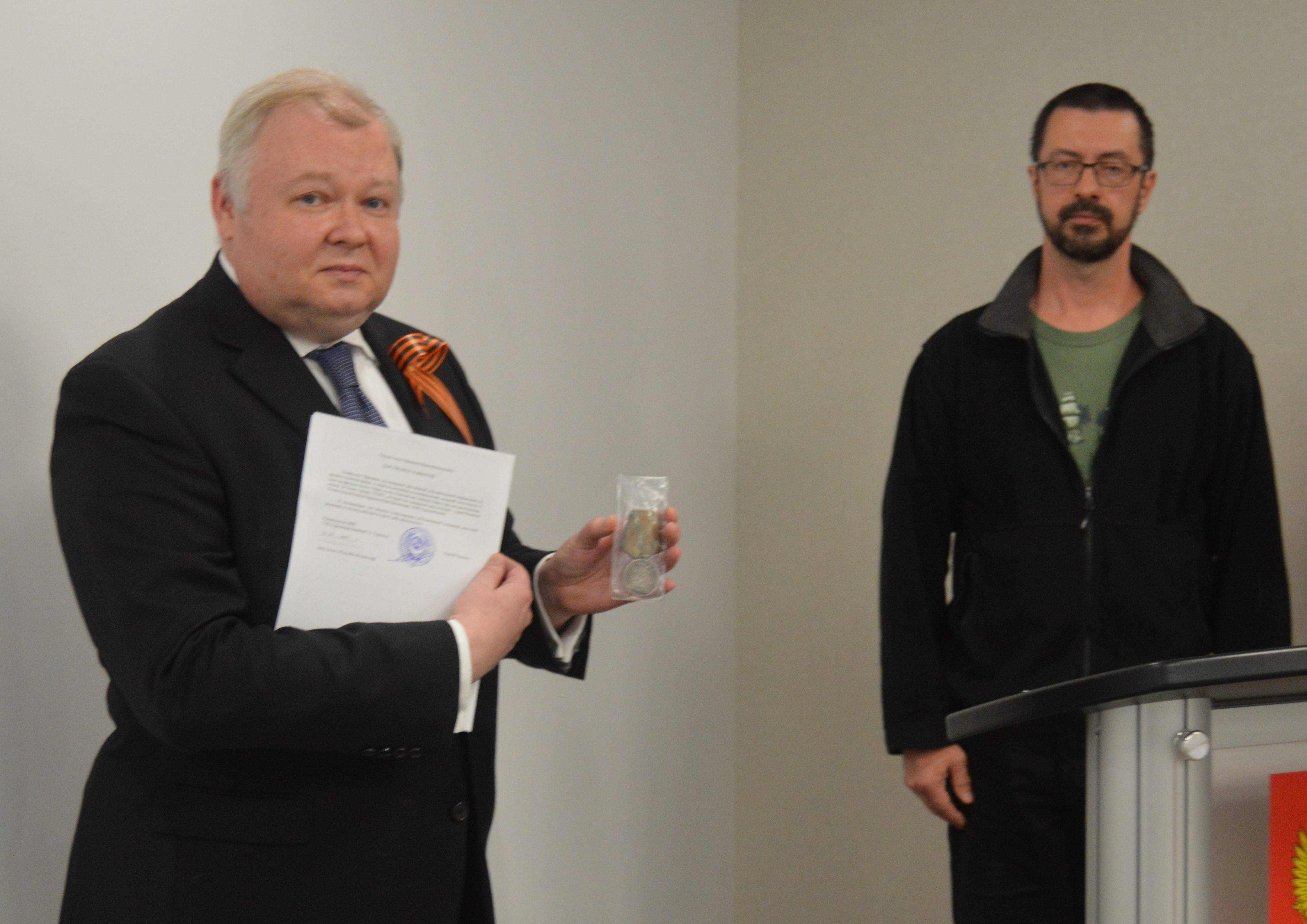 Награда была найдена на аукционе в Канаде реконструктором Сергеем Еремеевым членом военно-исторического клуба «191 стрелковая дивизия» из Торонто. Дальше к процессу подключился генеральный консул России в Торонто Кирилл Михайлов, а с российской стороны - председатель Вологодского отделения РВИО Александр Метелкин и губернатор Вологодской области Олег Кувшинников