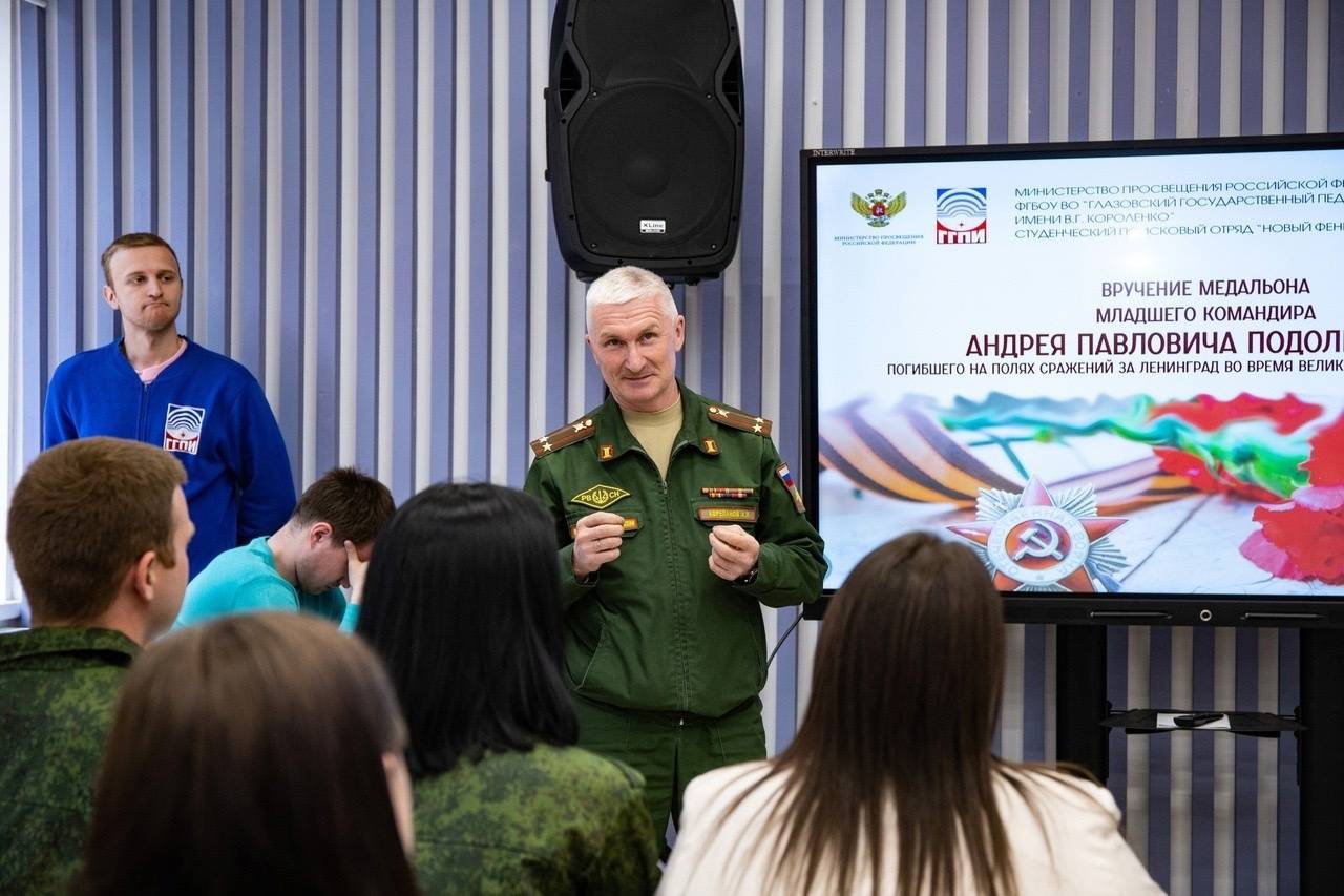 24 июня в ГГПИ имени В.Г. Короленко (г. Глазов) состоялось вручение медальона родным Подольского Андрея Павловича. Медальон нашли ленинградские поисковики в 1997 году, но тогда установить родных не удалось: из Красноярского края, откуда был призван Подольский, семья уехала в Удмуртию.