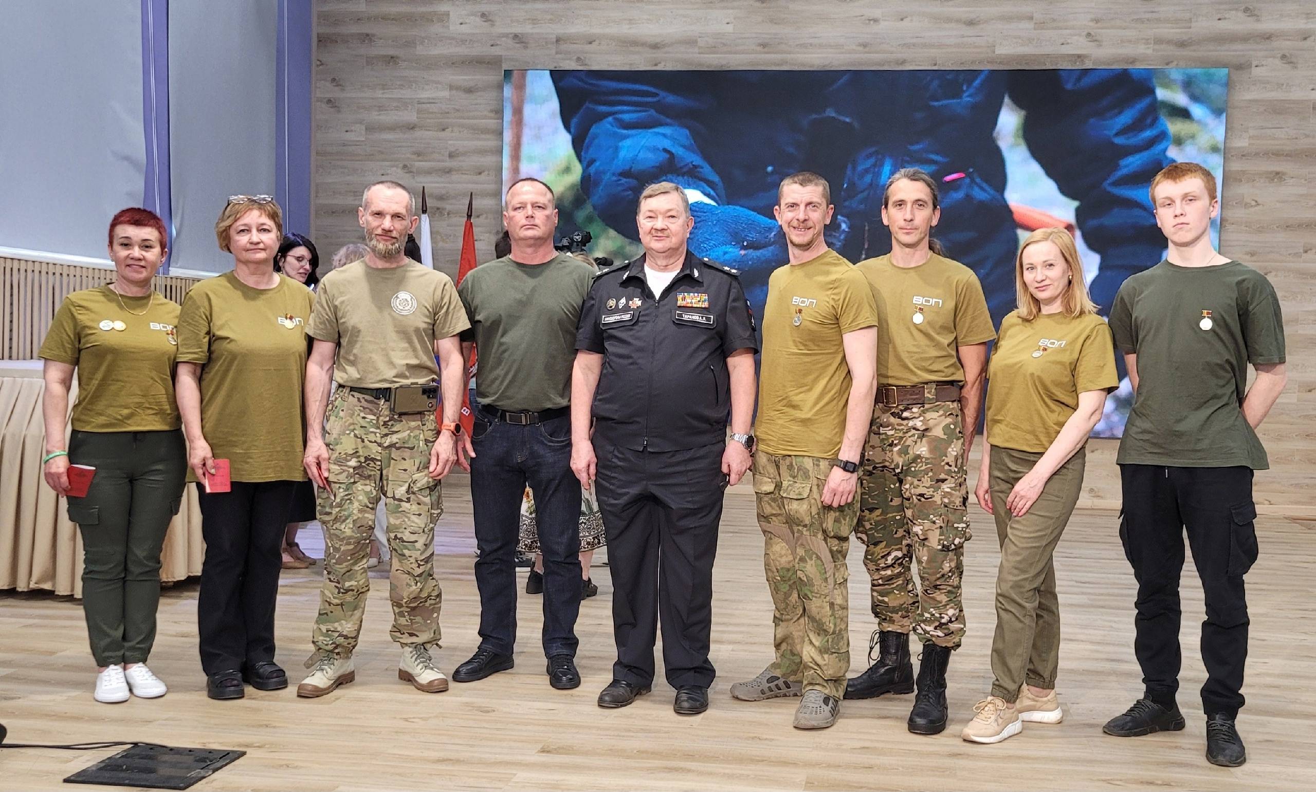 Заместитель директора Департамента Министерства обороны РФ по увековечению памяти погибших при защите Отечества Андрей Леонидович Таранов за большой личный вклад в установление имен погибших и судеб пропавших без вести военнослужащих вручил 9 членам регионального отделения РВИО в Вологодской области знаки отличия Министерства обороны Российской Федерации «За отличие в поисковом движении».