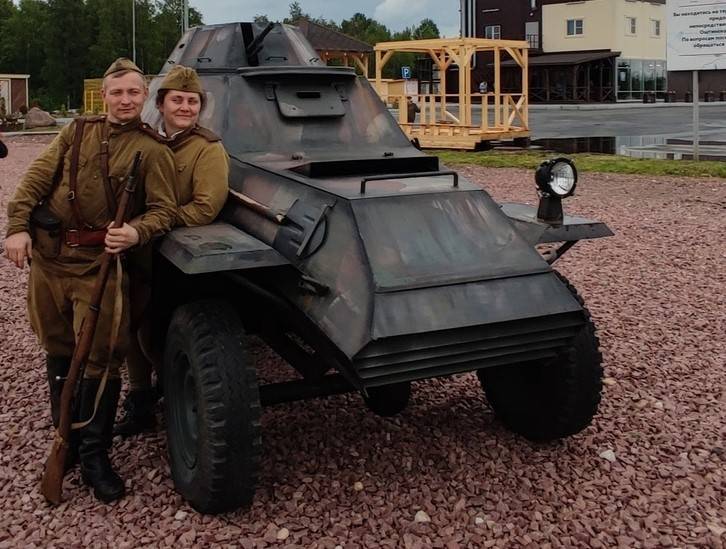 На площадке гремят выстрелы и взрывы, между атаками показывается работа связистов, саперов, снайперов, а в блиндажах тоже кипит работа- в ходе войны РККА заменила петлицы на погоны, и то же самое приходится проделывать участникам мероприятия- никаких допущений, все должно соответствовать историческим реалиям.