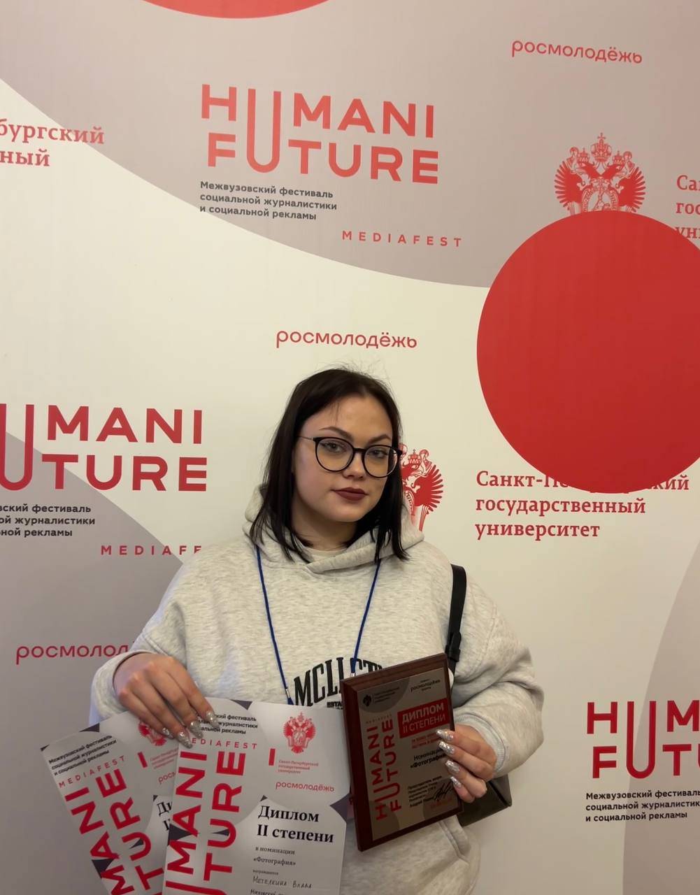 Активный участник Вологодского отделения РВИОЛ Влада Метелкина заняла призовые места сразу в двух категориях на Международном медиафестивале "HUMANI FUTURE" - первом в России студенческом фестивале социальной рекламы и социальной журналистики.