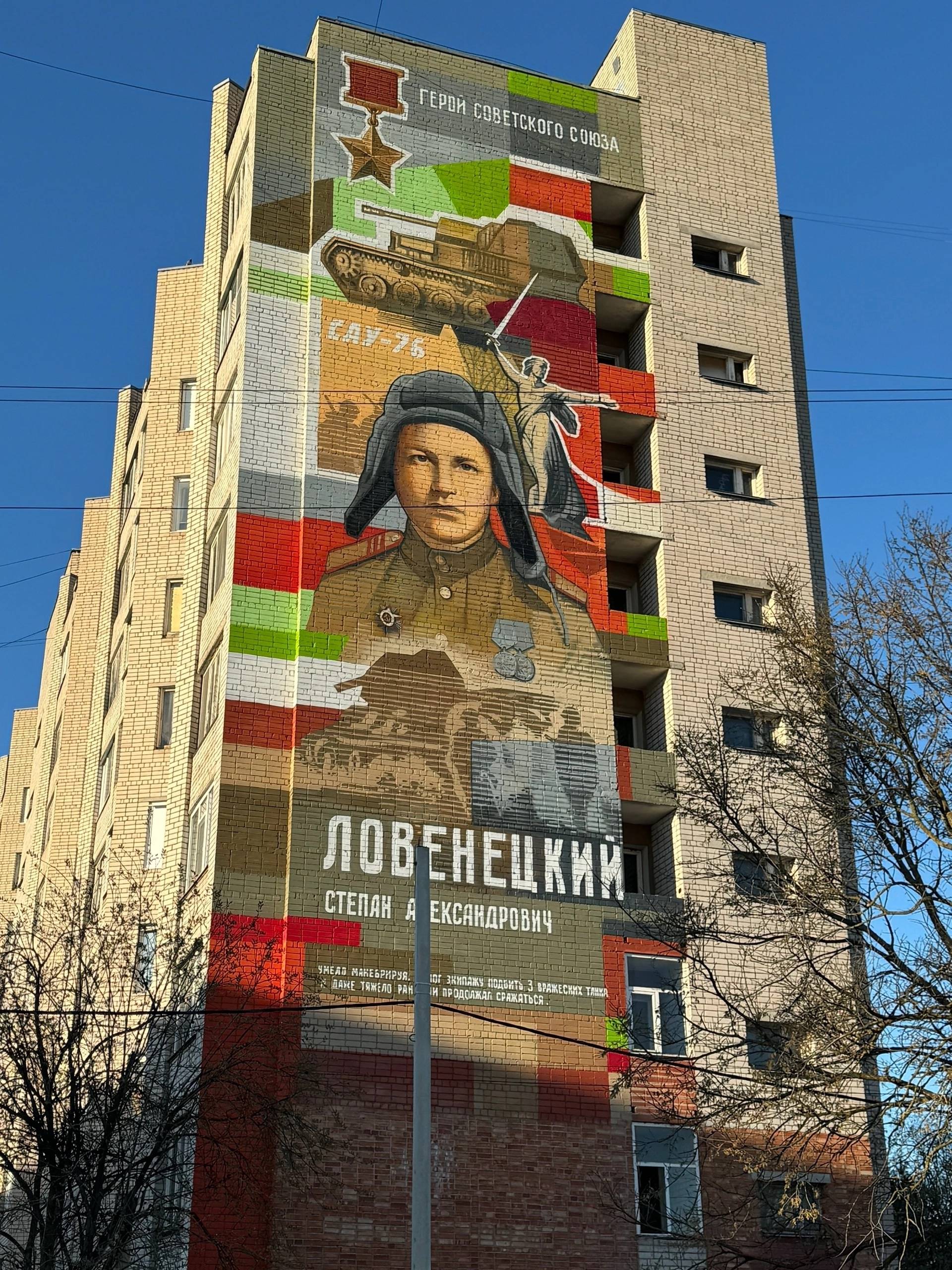 Накануне, в школе № 39 г. Вологды состоялась встреча с художником Олегом Ивановым, членом Российского военно-исторического общества. Уже более 15 лет художник не только пишет картины, но и оформляет интерьеры в разных городах России и за рубежом, создаёт фрески, скульптуры, арт-объекты, муралы. Олег Сергеевич создал мурал, посвященный Герою Советского Союза Степану Ловенецкому, расположенному на улице Ловенецкого, дом 15.