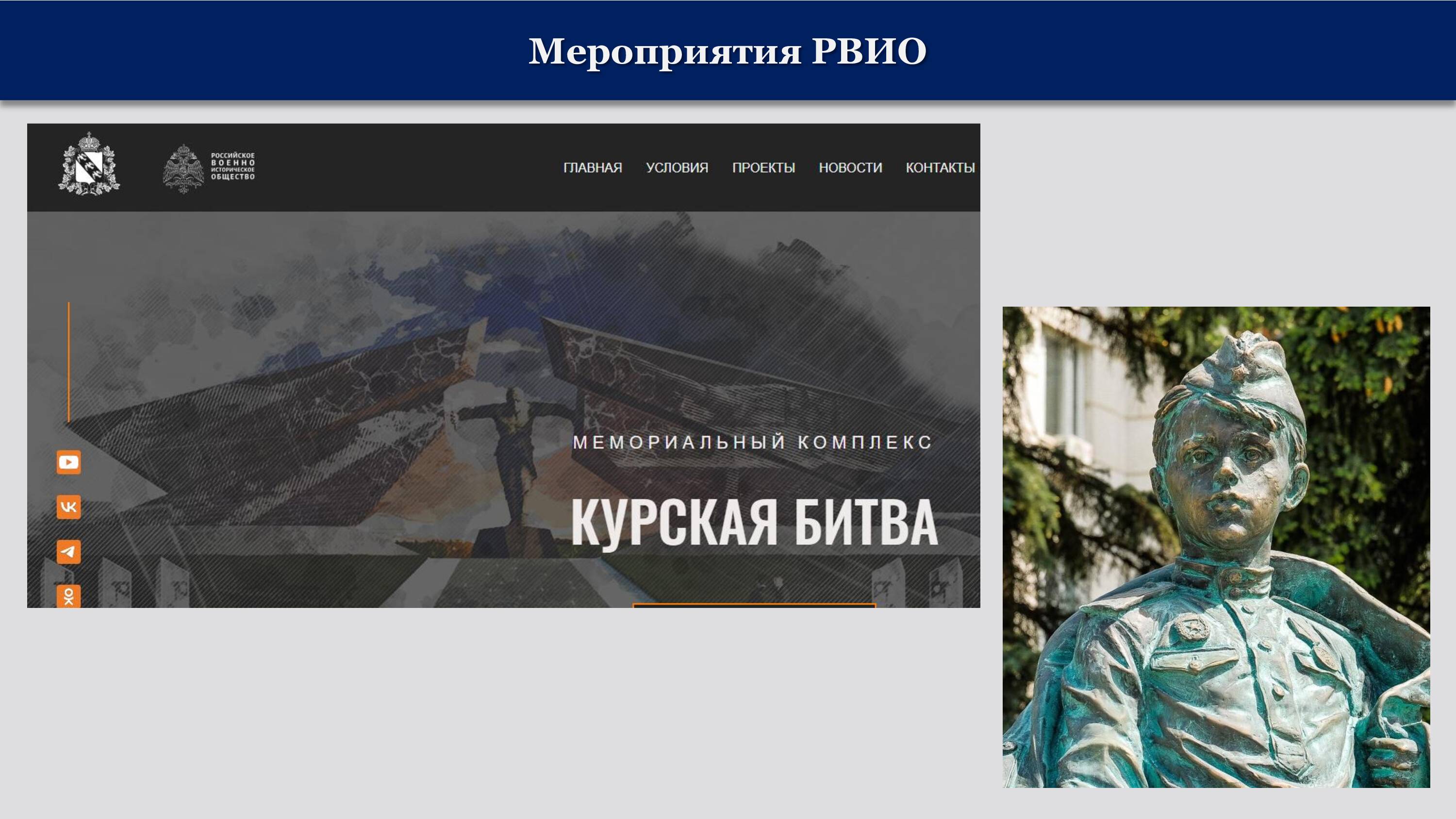 Подробно в докладе Наталья Валерьевна остановилась на учреждениях, организациях и общественных структурах, которые осуществляют в нашей стране сохранение исторической памяти об общей Победе народов Советского Союза в Великой Отечественной войне в целом, и на Огненной дуге, в частности.Здесь, докладчик отметила значимую работу по сохранению исторической памяти, популяризации исторической правды о Великой Отечественной войне, которую осуществляет Российское военно-историческое общество. Так, по Поручению Президента Российской Федерации В.В. Путина к 80-летию Курской битвы Российское военно-историческое общество совместно с Администрацией Курской области создаёт Мемориальный комплекс «Курская битва» в Поныровском районе.1 июня 2022 г. в Курске были открыты Мемориал «Сынам полков» и новая экспозиция Военно-исторического Музея «Юные защитники Родины», созданные по инициативе РВИО.