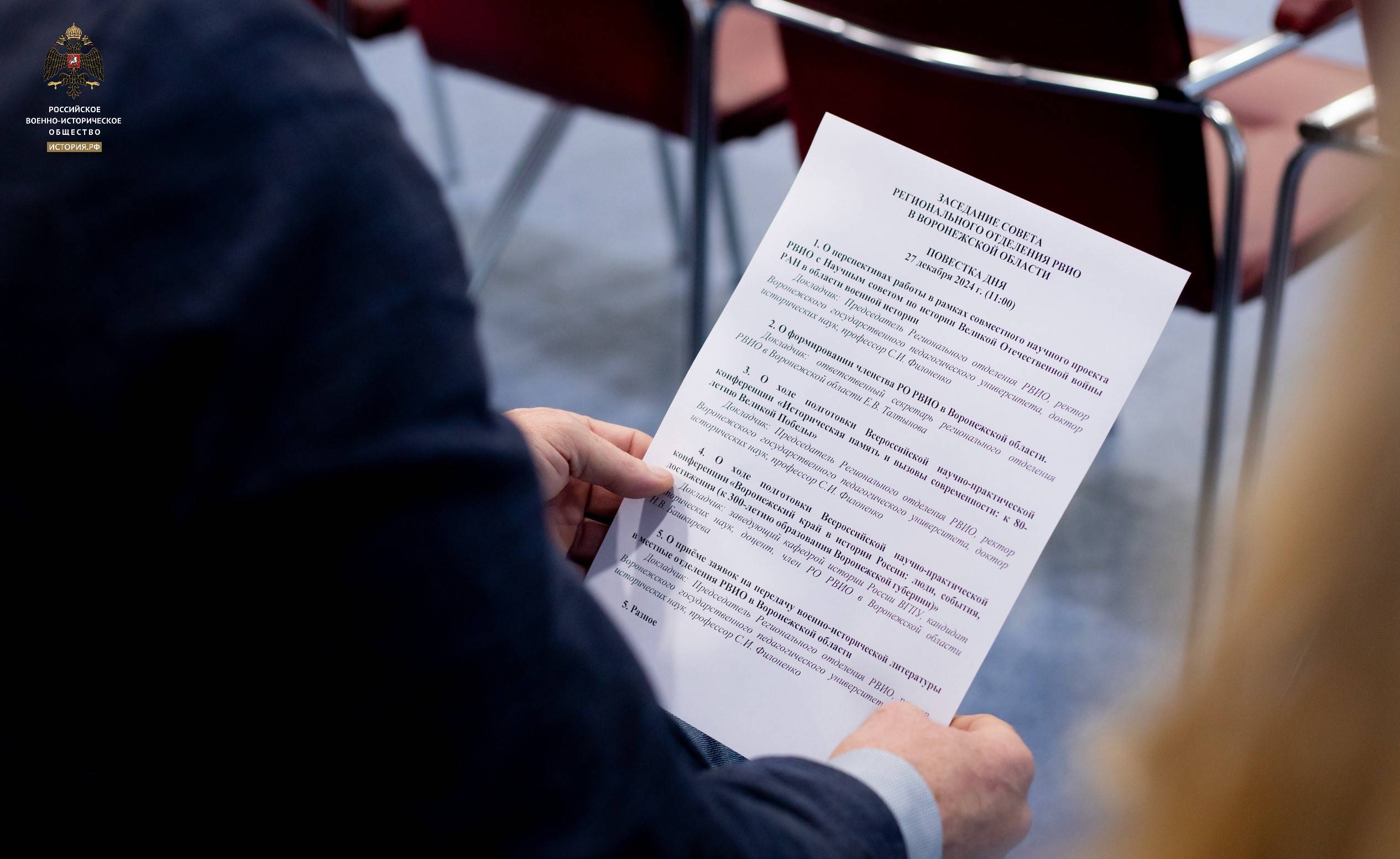 Заседание Совета провел председатель Реготделения, ректор ВГПУ С.И. Филоненко. Члены Совета обсудили итоги и перспективы работы в рамках совместного научного проекта РВИО с Научным советом по истории Великой Отечественной войны РАН в области военной истории.