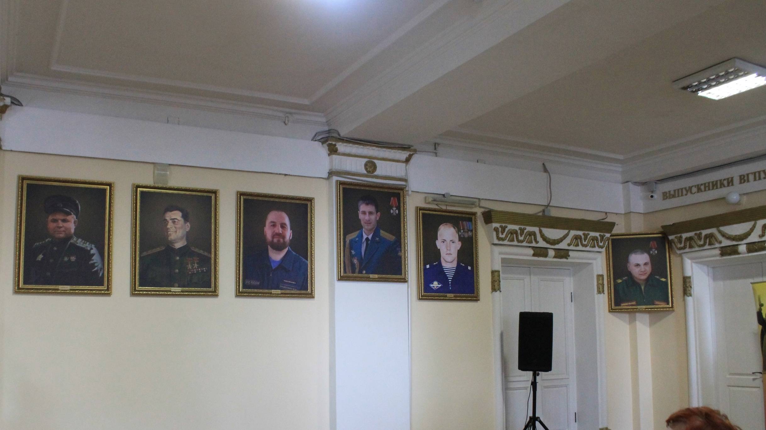 На открытии галереи присутствовали жены погибших героев СВО: Сабина Кругова, Анна Рожкова, Анжелика Пашкевич, ветераны и студенты ВГПУ.