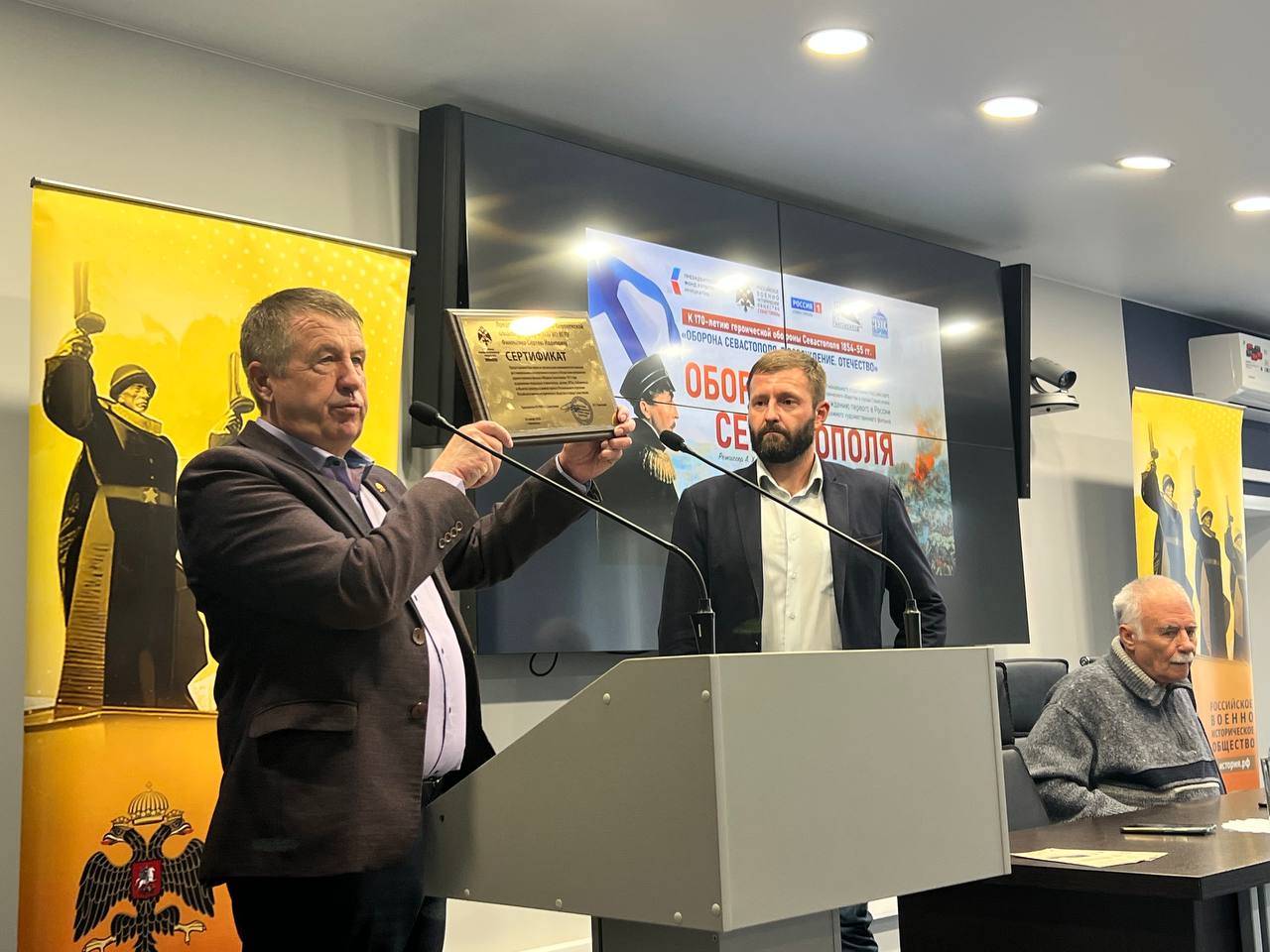 Предваряя начало показа, со вступительным словом перед собравшимися по поручению Председателя РО РВИО в Воронежской области С.И. Филоненко выступил к.и.н., доцент кафедры истории России А.М. Ипатов. Затем слово взял председатель РО РВИО в г. Севастополе Н.Н. Помогалов. Он раскрыл детали об идее и самой реализации оцифровки киноленты, о роли известного актера В.И. Сухорукова в этом процессе. Николай Николаевич вручил сертификат о возможности демонстрации киноленты на различных площадках г. Воронежа.