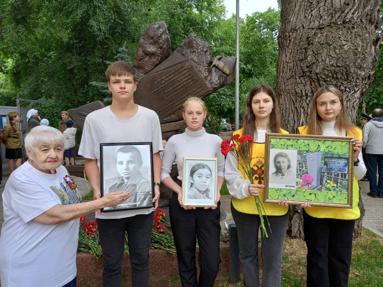 Долгое время была известна только одна фотография девочки, погибшей на празднике, Эллочки Кадашевич, которую сохранила ее сестра. К 80-летию освобождения Воронежа от немецко-фашистских захватчиков писательница Л. Шилина в сборнике «Не быть в забвенье имени героя…» поместила статью Ф. Блинчевской, Т. Чернобоевой, где впервые называются имена 13 погибших детей и помещена фотография еще одного ребенка – Якимова Шурика.