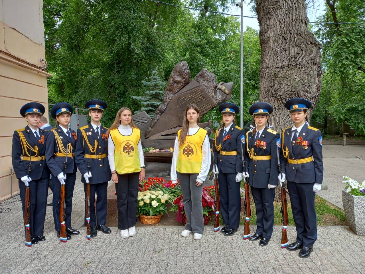 В завершение мероприятия участница Волонтёрского движения «Белый журавль» МБУДО Детско-юношеский центр Якименко Алла прочитала стихотворение «Дети войны» (руководитель М.А. Петросян), а девочки из вокального объединения «Соловей» гимназии №1 (руководитель Т.В. Черникина) исполнили песню «Аист на крыше».