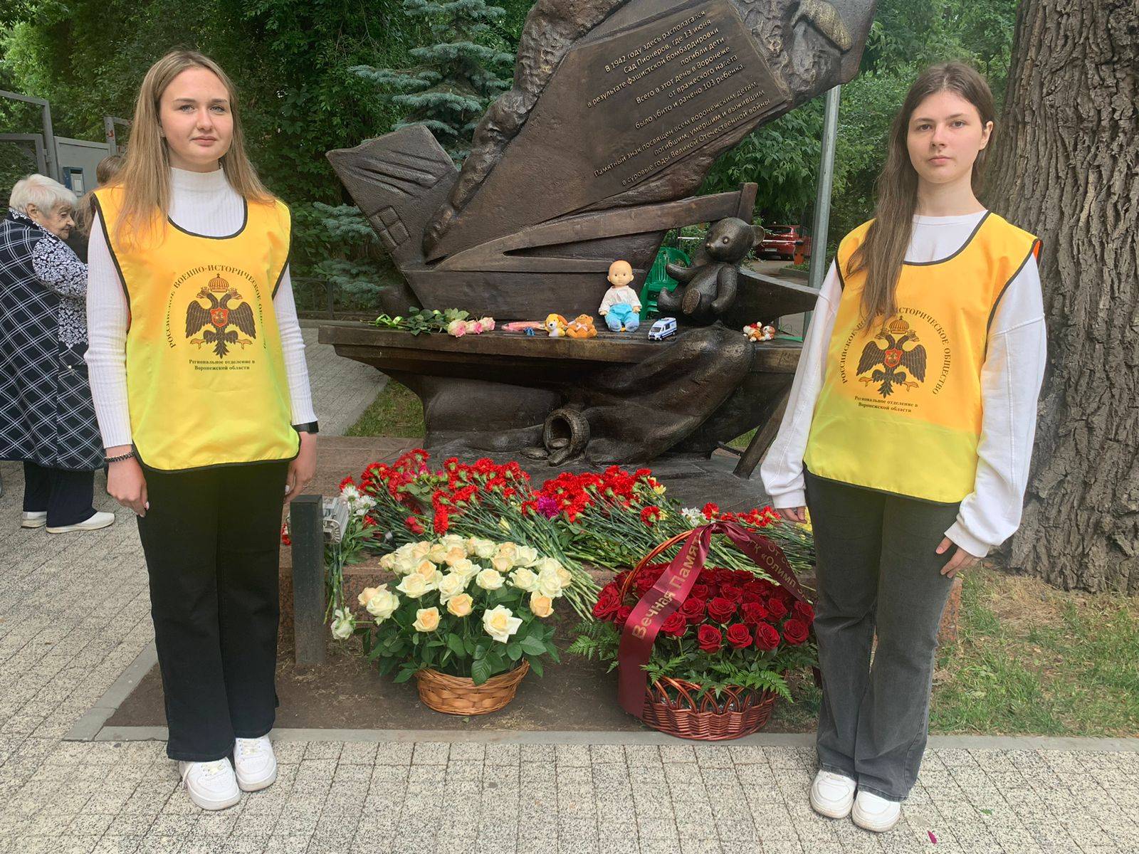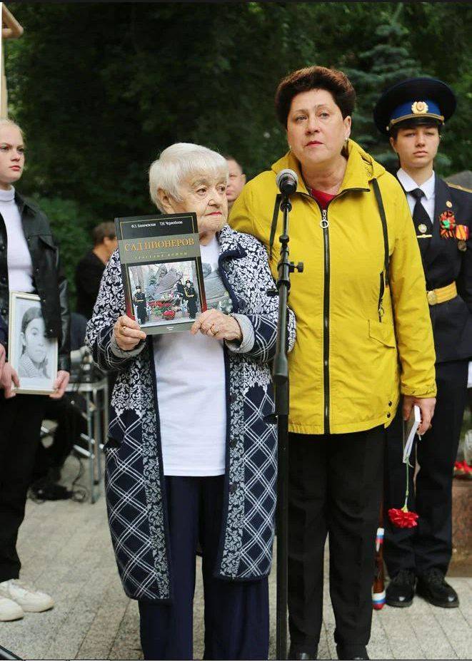 О трагедии в Саду пионеров и сохранении исторической памяти рассказали авторы популярных книг об этом событии: Фаина Зиновьевна Блинчевская и Татьяна Николаевна Чернобоева. Они напомнили о том, что памятные мероприятия на месте бомбардировки Воронежа во время детского праздника начали проводить ежегодно по инициативе известной писательницы О.К. Кретовой (1903-1994). К 50-летию трагедии здесь был установлен камень с мемориальной табличкой (архитектор В. Фролов, скульптор А. Мельниченко), а к 80-летию события по заказу мэрии Воронежа изготовлен памятник в виде скамейки с детской игрушкой у разорванного взрывом дерева (скульптор В. Фильшин).