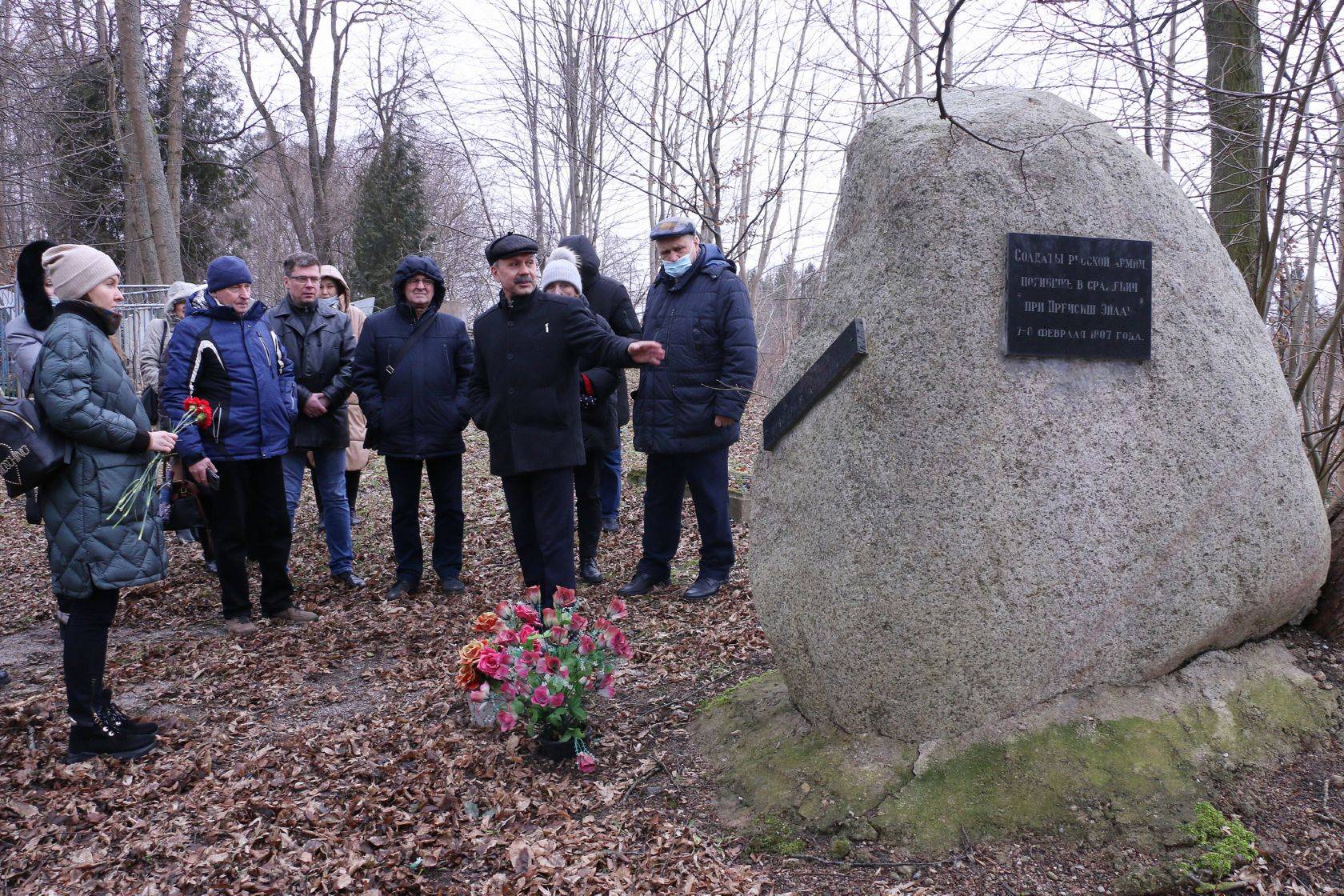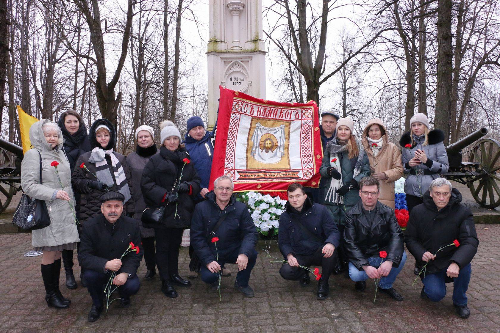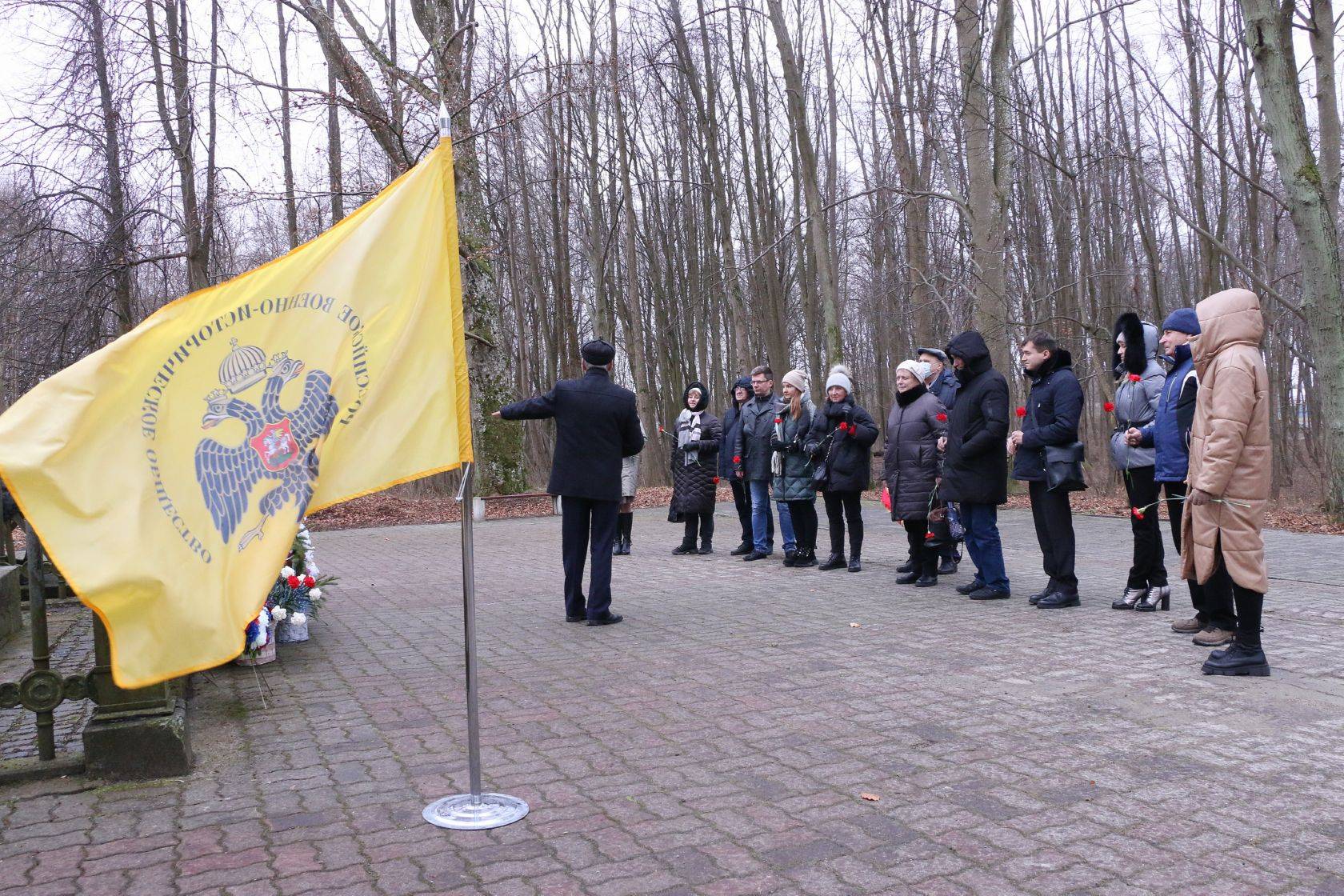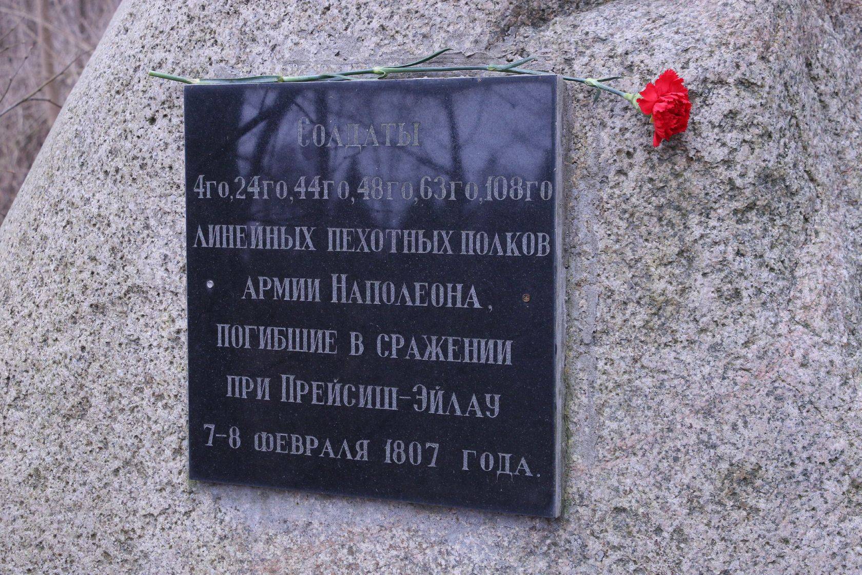 Участники акции возложили цветы к монументу в честь сражения при Прейсиш-Эйлау, а также посетили памятный знак, установленный на месте захоронения солдат русской и французской армий в войне 1807 года.