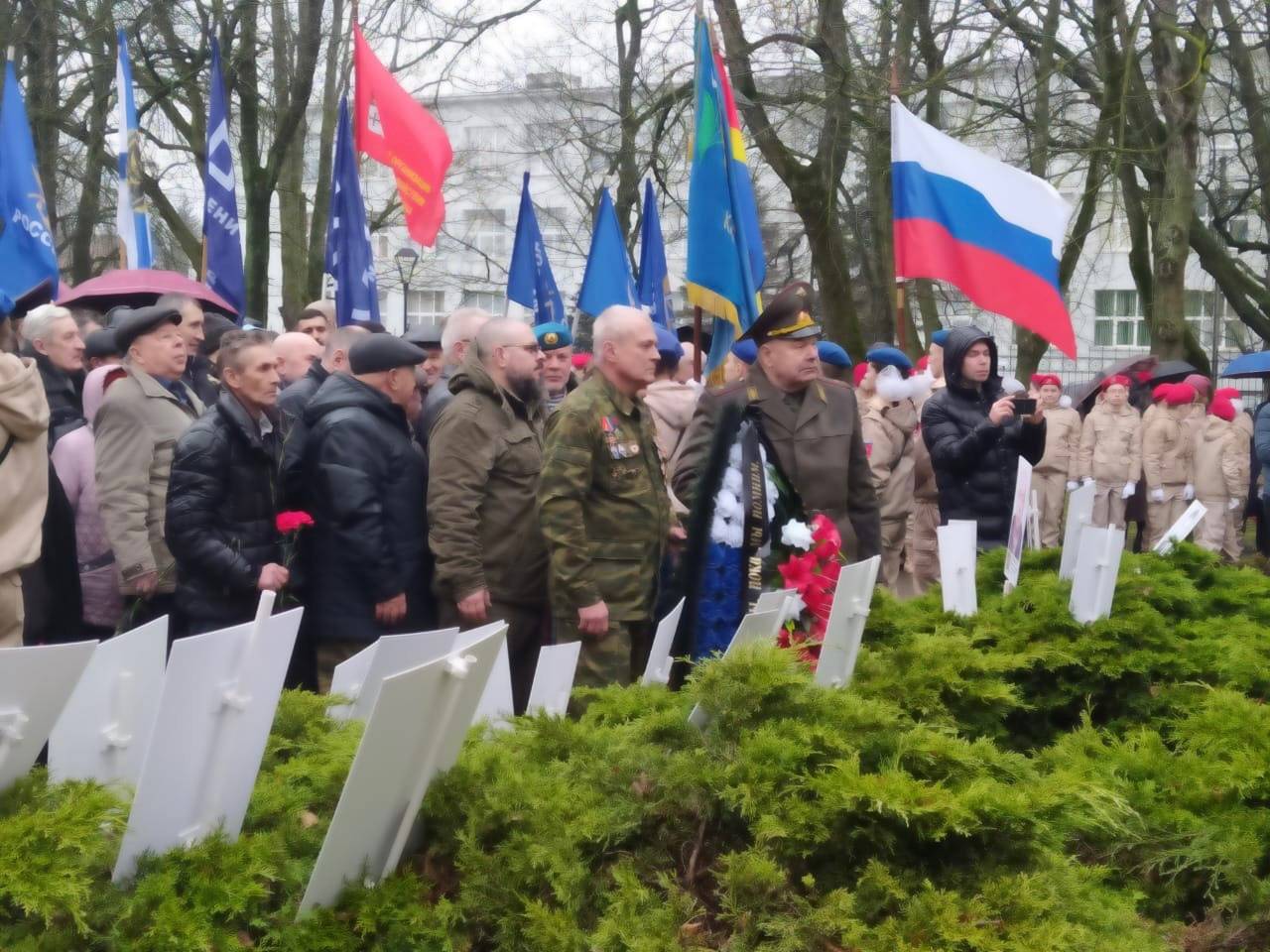 В траурном митинге в честь погибших калининградцев приняли участие представители региональных властей и заксобрания, командование Балтийского флота, ветеранские общественные организации, родные и близкие воинов-героев, члены молодежных патриотический клубов и юнармейцы, военнослужащие и члены их семей.