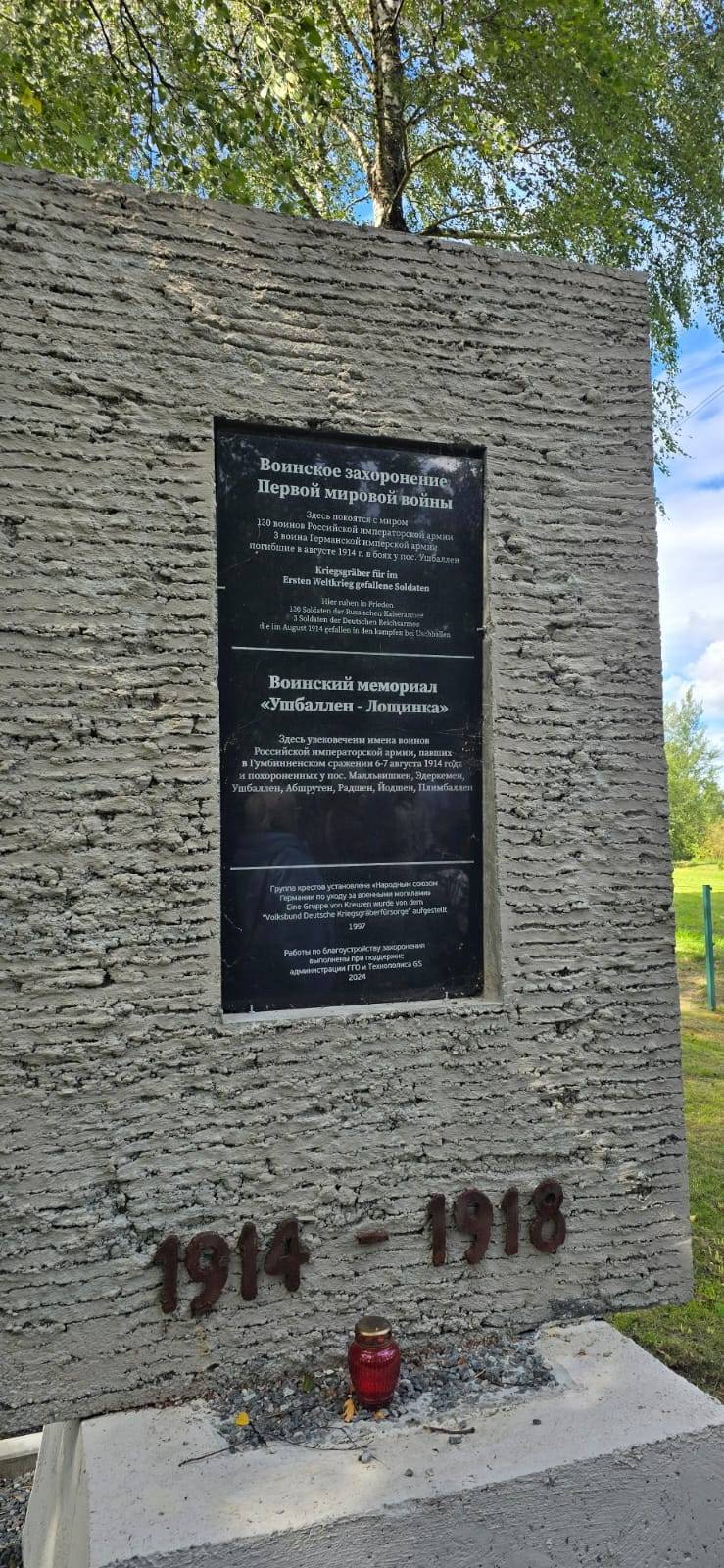 Участники мероприятия посетили воинский мемориал «Ушбален-Лощинка», где захоронены 130 воинов русской армии, погибших в годы Первой мировой войны. Этот мемориал является символом скорби и благодарности за подвиг защитников Отечества. После этого торжественная часть продолжилась у памятника «Памяти забытой войны», где прошёл поминальный молебен о павших на полях сражений Первой мировой войны. В ходе церемонии участники возложили цветы и выразили свою благодарность героям, отдавшим жизнь за мир и свободу.