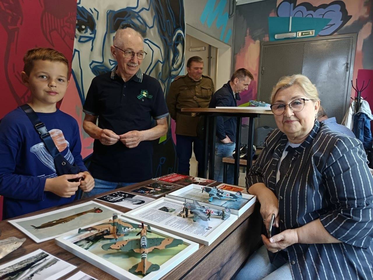 В ходе мероприятия продолжилось знакомство с гостем нашего города - юным любителем авиации Климом Болговым из Подмосковья и его мамой. Члены РВИО и творческой группы подарили Климу модель самолёта-истребителя Ла-5, а Леонидом Ландо и организатором выставки «Балтийский масштаб - 2025» Сергеем Рябининым была проведена для него обстоятельная индивидуальная экскурсия.