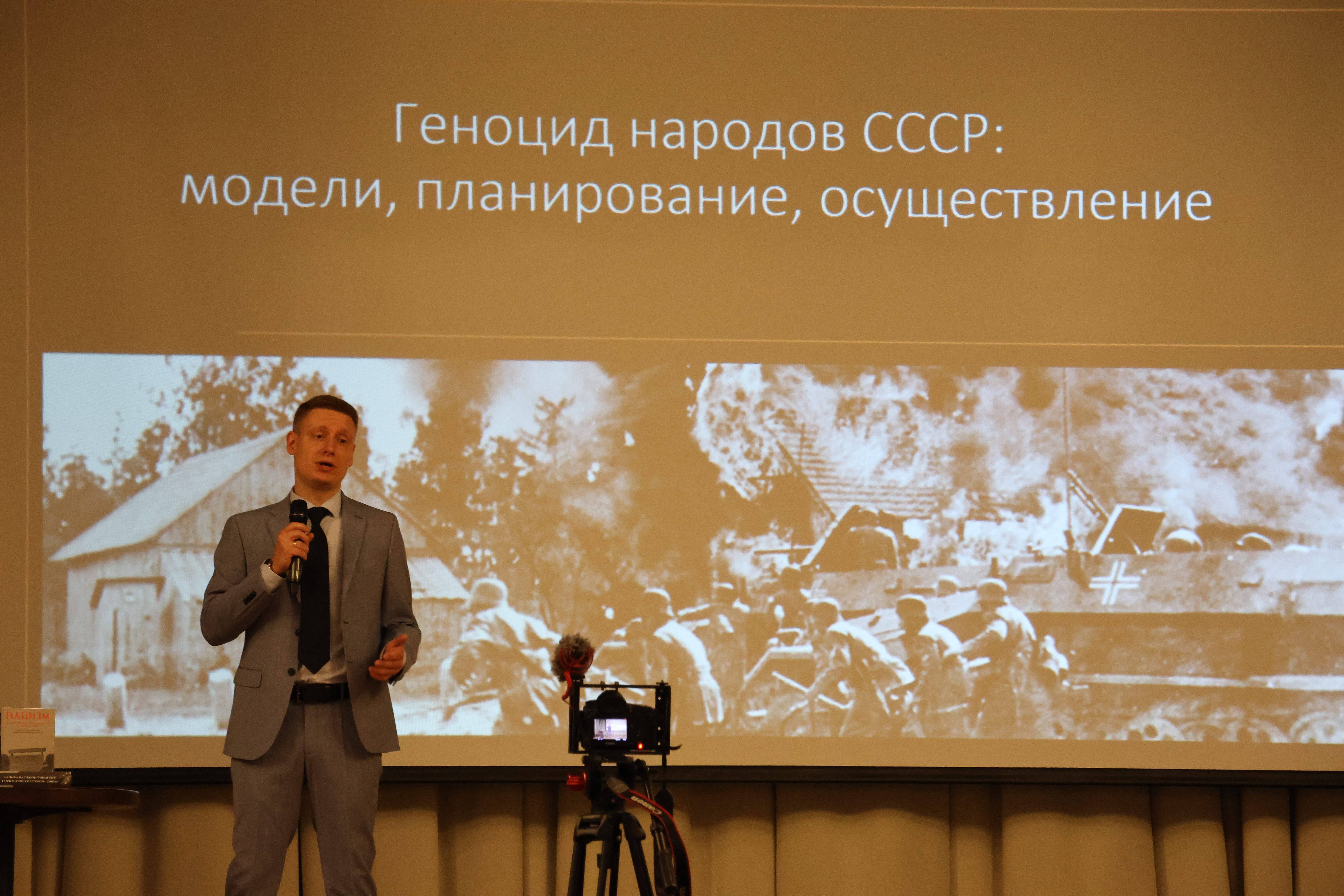 Егор рассказал собравшимся о преступлениях нацизма, "плане голода" и других аспектах истребительной политики Третьего Рейха на территории СССР.