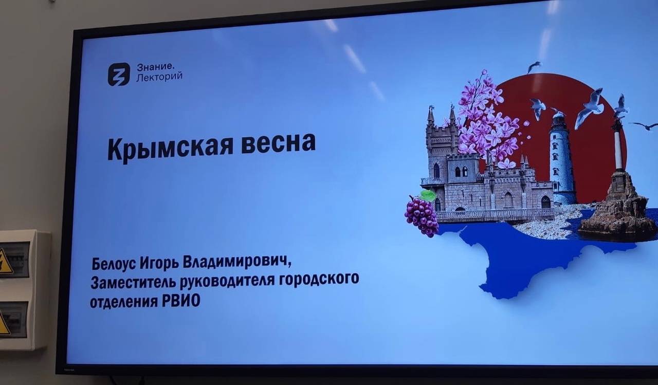 22 марта РО РВИО и РО общества "ЗНАНИЕ" продолжили цикл кино-лекций, посвящённых 10-й годовщине присоединения Крыма к России.