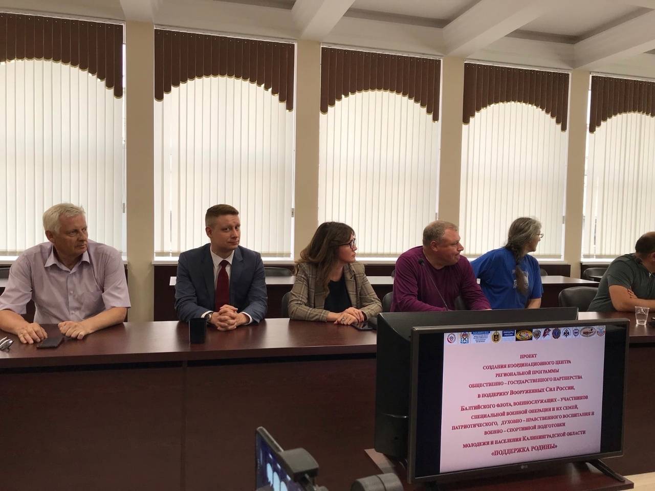 На встрече с активом патриотических организаций для собравшихся в этот день была проведена презентация пилотного проекта создания координационного центра региональной программы общественно-государственного партнерства в поддержку Вооруженных Сил России, Балтийского флота, военнослужащих–участников специальной военной операции и их семей, патриотического, духовно – нравственного воспитания и военно – спортивной подготовки молодежи и населения Калининградской области «ПОДДЕРЖКА РОДИНЫ».