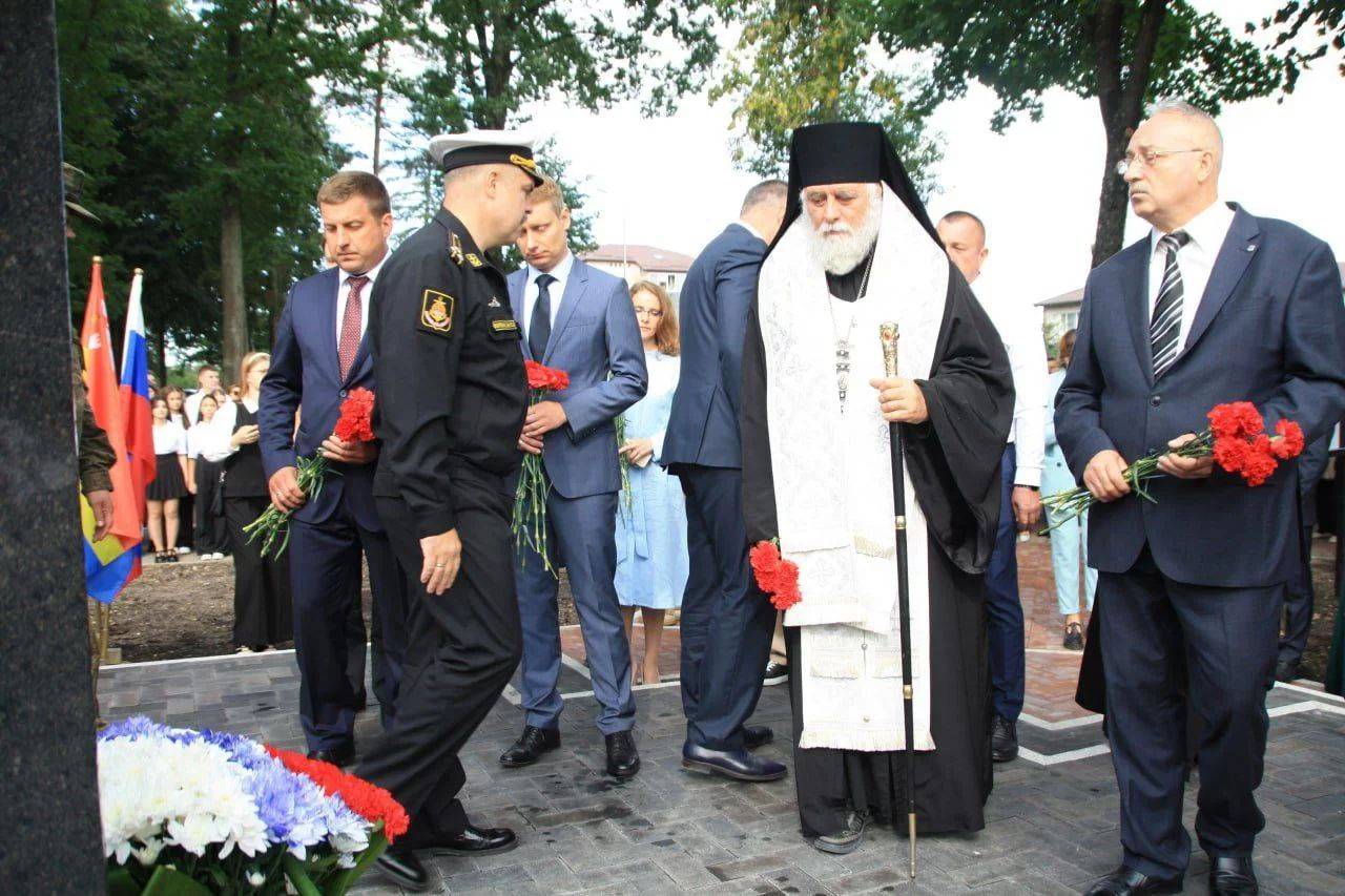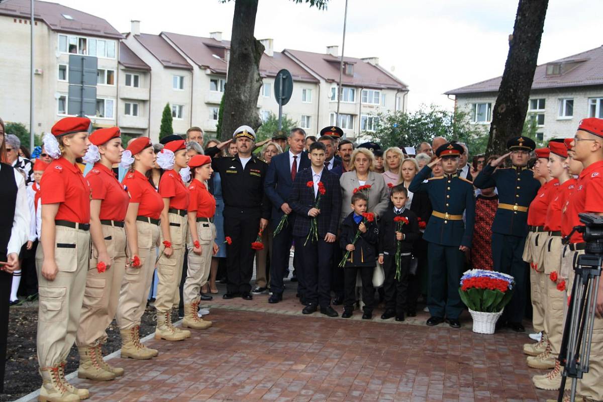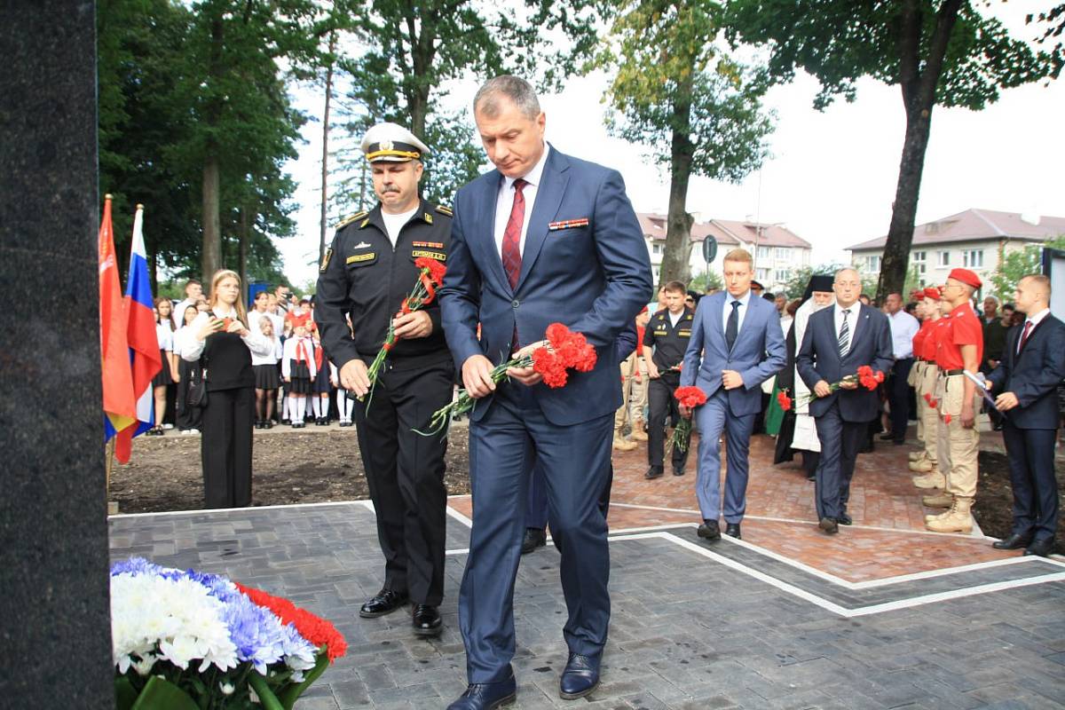 Цветы к бюсту Героя возложили участники церемонии, первый заместитель председателя правительства региона Сергей Елисеев, заместитель командующего Балтийским флотом Дмитрий Артемов, глава администрации Гусевского городского округа Александр Китаев, глава муниципалитета Андрей Гнездилов, исполнительный директор Российского военно-исторического общества в Калининградской области Константин Петунин, депутаты Законодательного собрания Калининградской области Екатерина Канаева и Наталья Морозова, ученики школы № 3, жители городского округа.