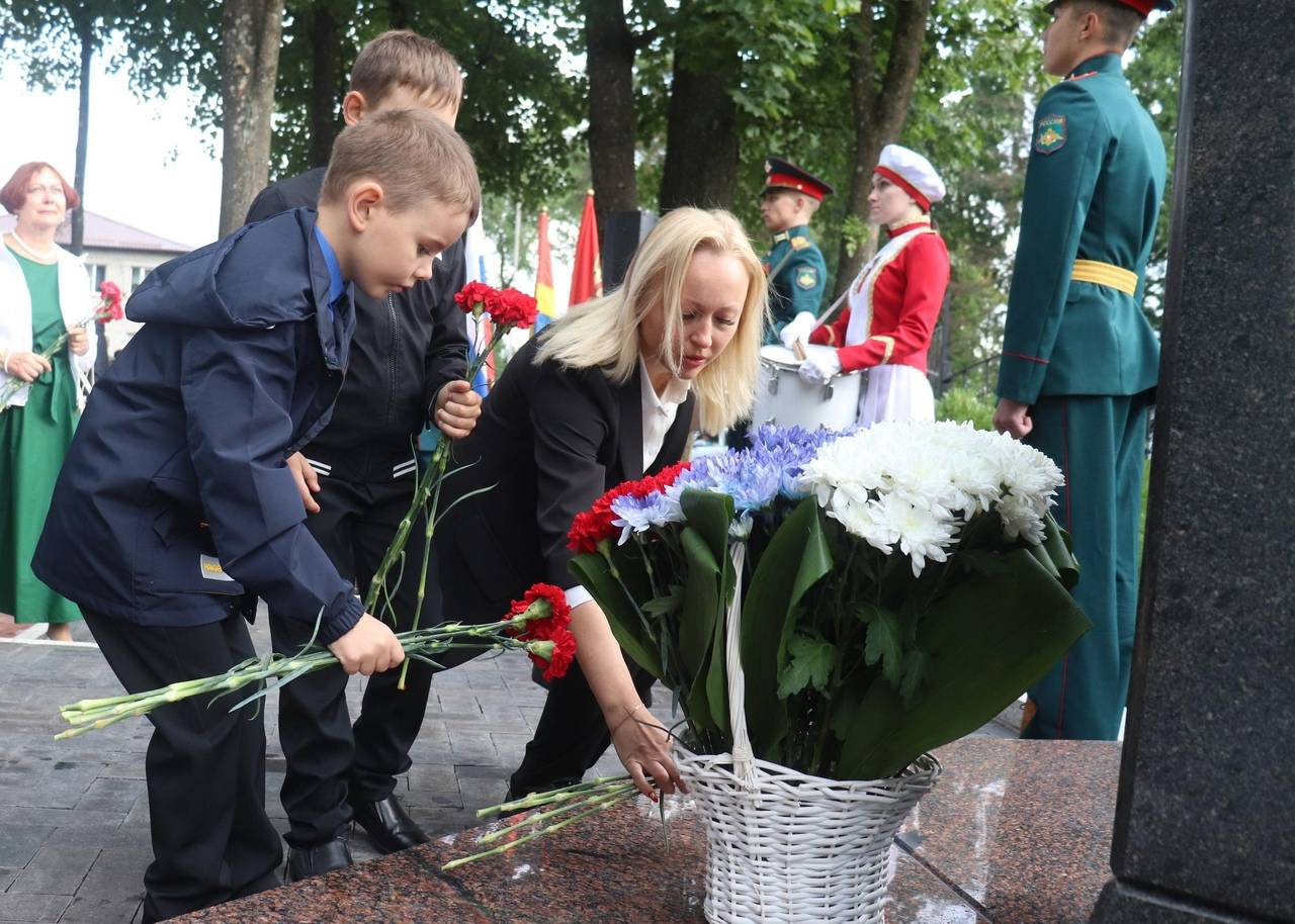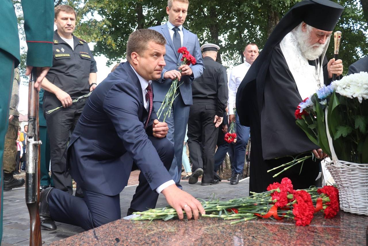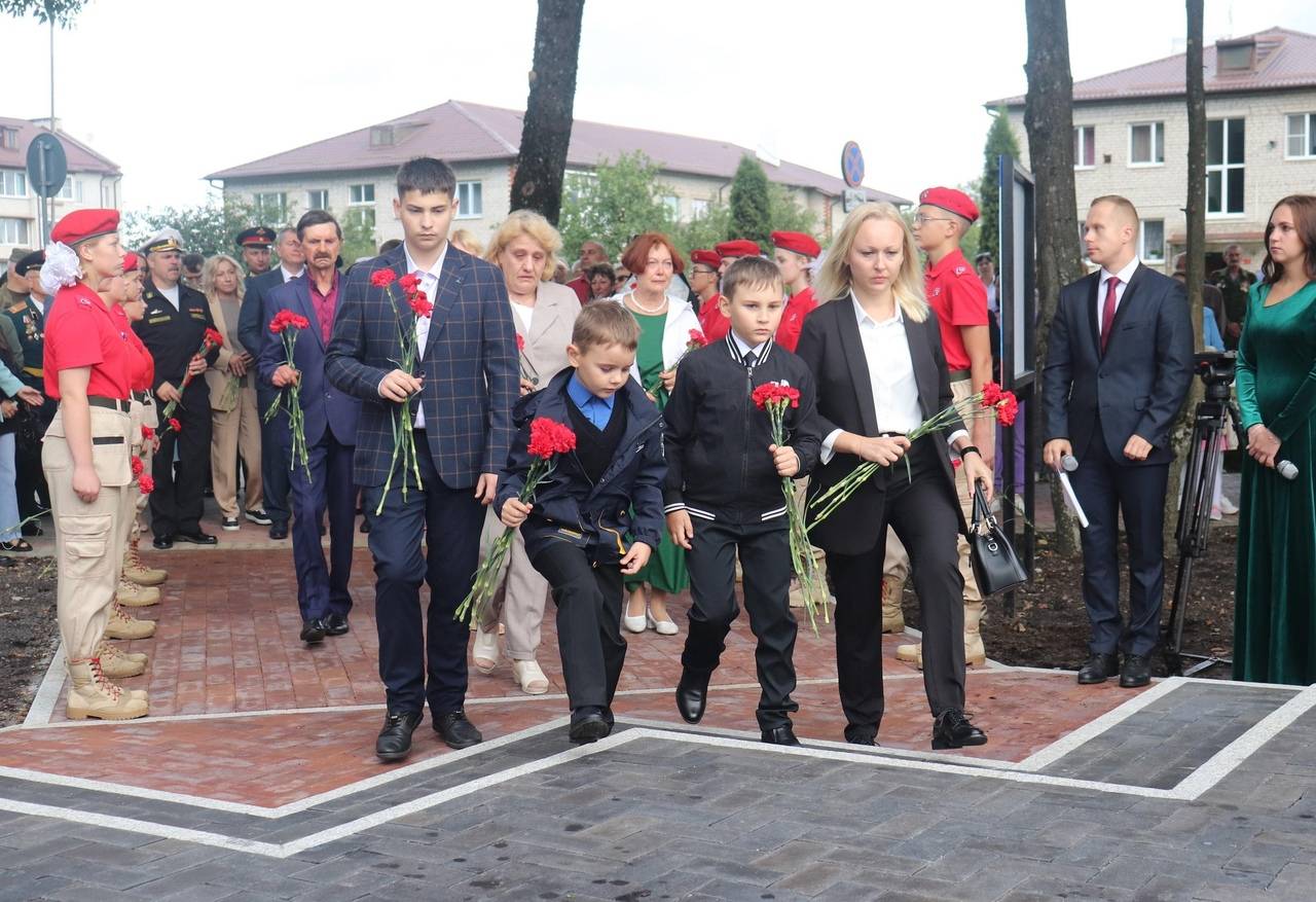 Цветы к бюсту Героя возложили участники церемонии, первый заместитель председателя правительства региона Сергей Елисеев, заместитель командующего Балтийским флотом Дмитрий Артемов, глава администрации Гусевского городского округа Александр Китаев, глава муниципалитета Андрей Гнездилов, исполнительный директор Российского военно-исторического общества в Калининградской области Константин Петунин, депутаты Законодательного собрания Калининградской области Екатерина Канаева и Наталья Морозова, ученики школы № 3, жители городского округа.