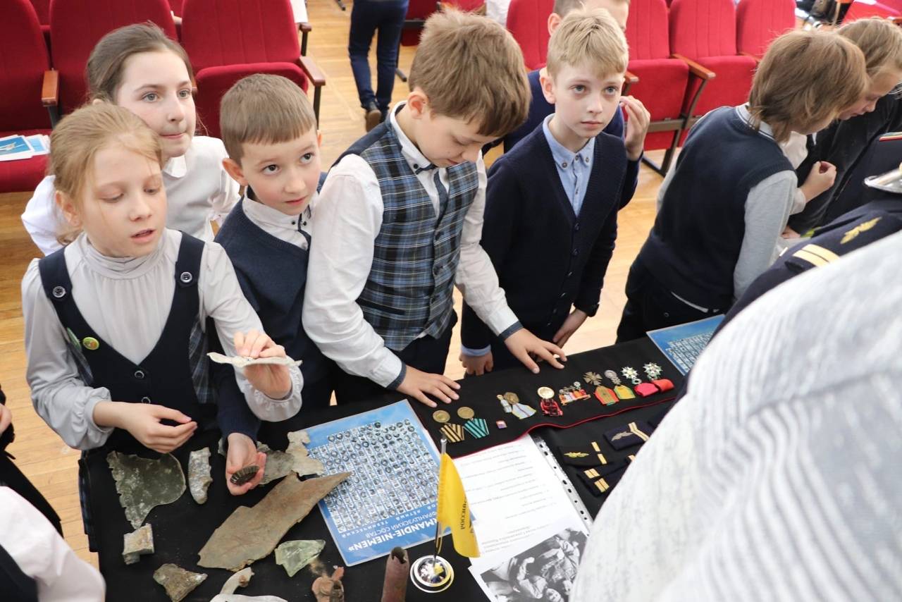 Ученики начальной школы узнали о развитии авиации в нашей стране, о полке «Нормандия-Неман». Военные историки и краеведы, участники творческой группы «Авиация 3-го Белорусского фронта» рассказали школьникам об участии легендарной эскадрильи в Восточно-Прусской операции.