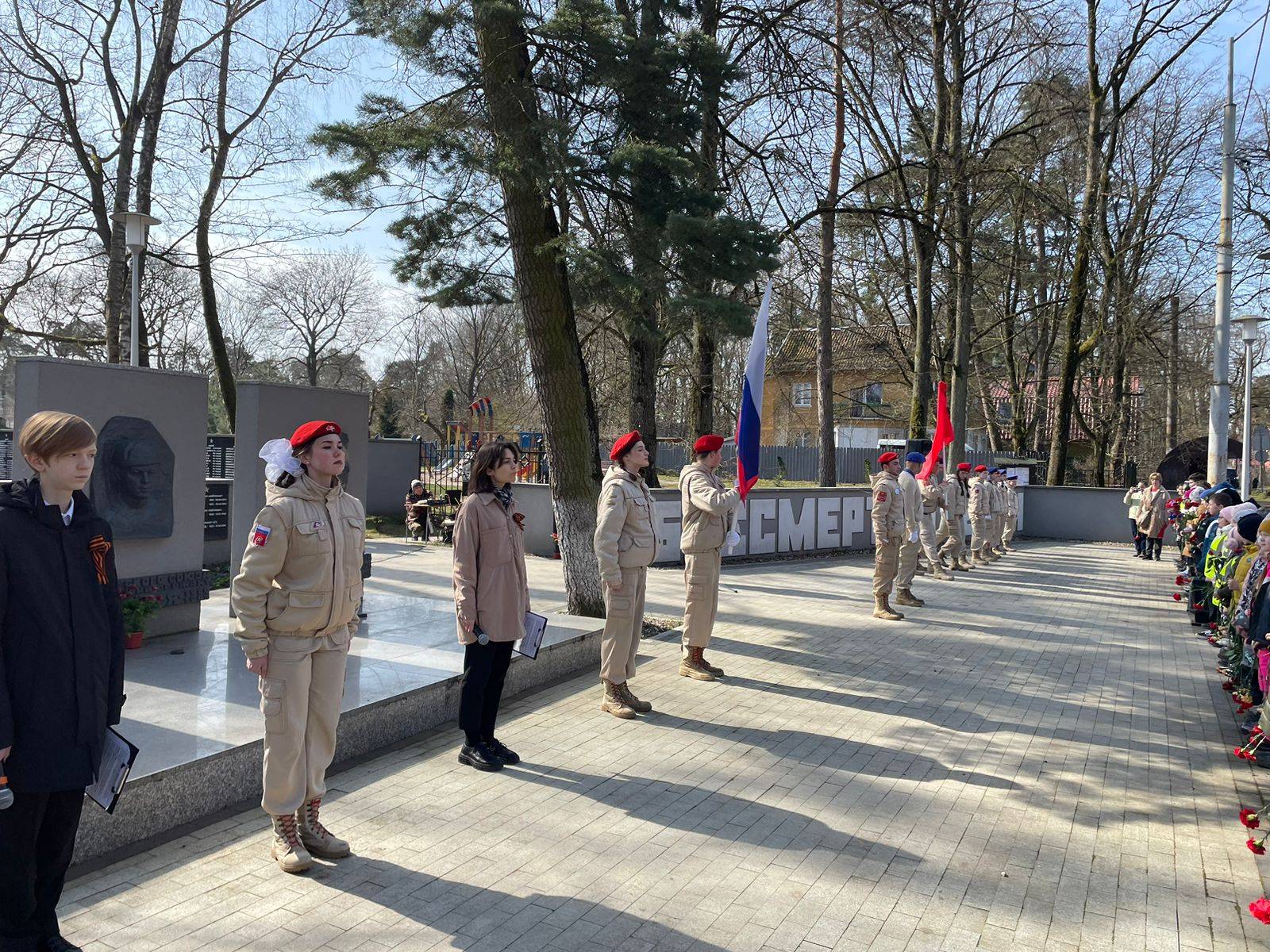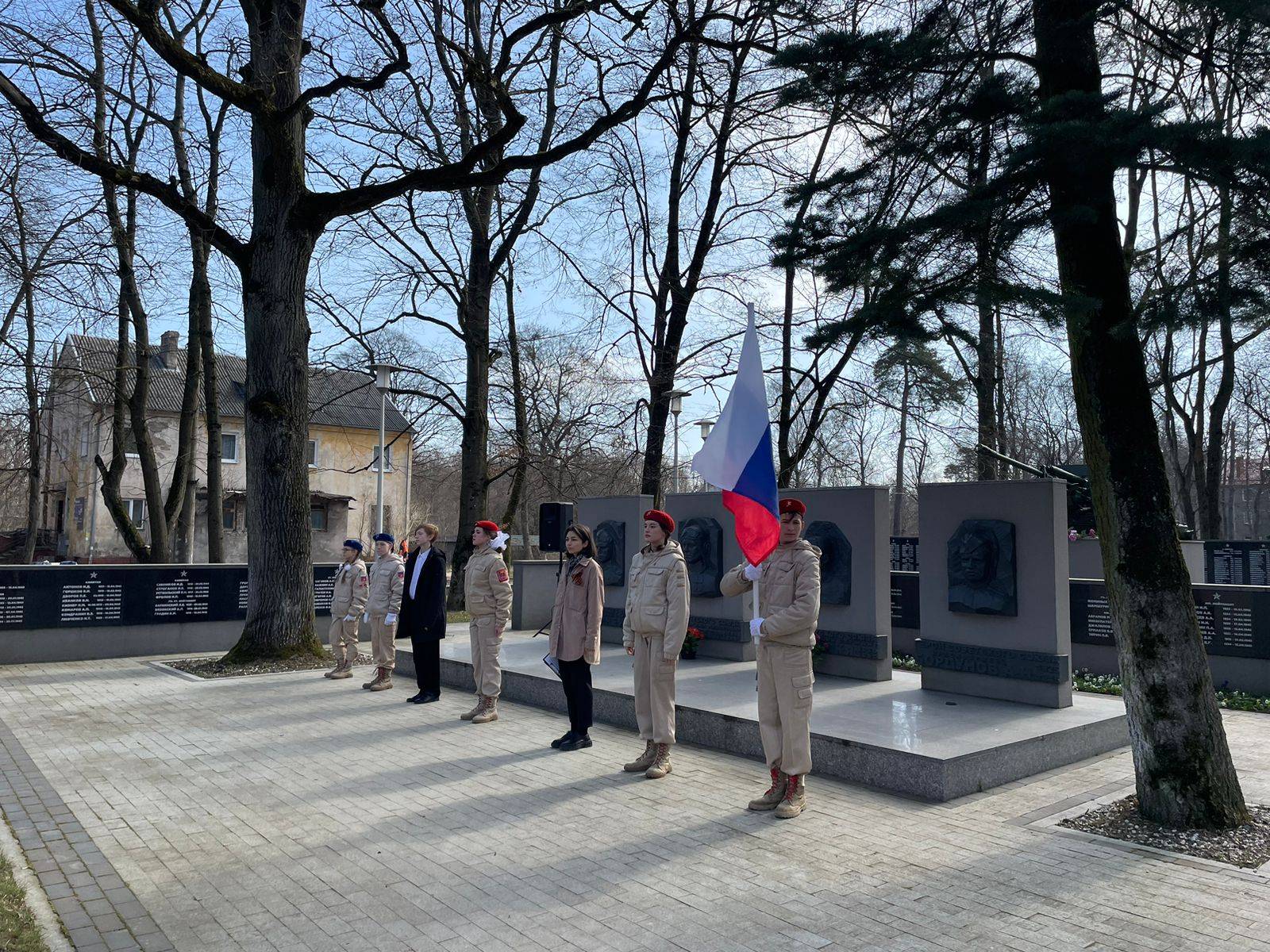 В 78 годовщину штурма Кёнигсберга в посёлке имени Александра Космодемьянского (г. Калининград) прошло торжественное мероприятие. Собравшиеся у братской могилы, где похоронено более 900 солдат и офицеров РККА, горожане, школьники и юнармейцы почтили память павших в боях. Вспомнили о подвигах Героев Советского Союза, захороненных в этом месте: Евгения Иннокентьевича Бурыхина, Петра Михайловича Дьякова, Константина Яковлевича Карташева, Бордунова Алексея Николаевича. К памятнику Героям были возложены цветы. Перед собравшимися выступил исполнительный директор Российского военно-исторического общества в Калининградской области Константин Петунин, напомнивший о тех героических событиях и необходимости всегда быть готовым встать на защиту Родины.