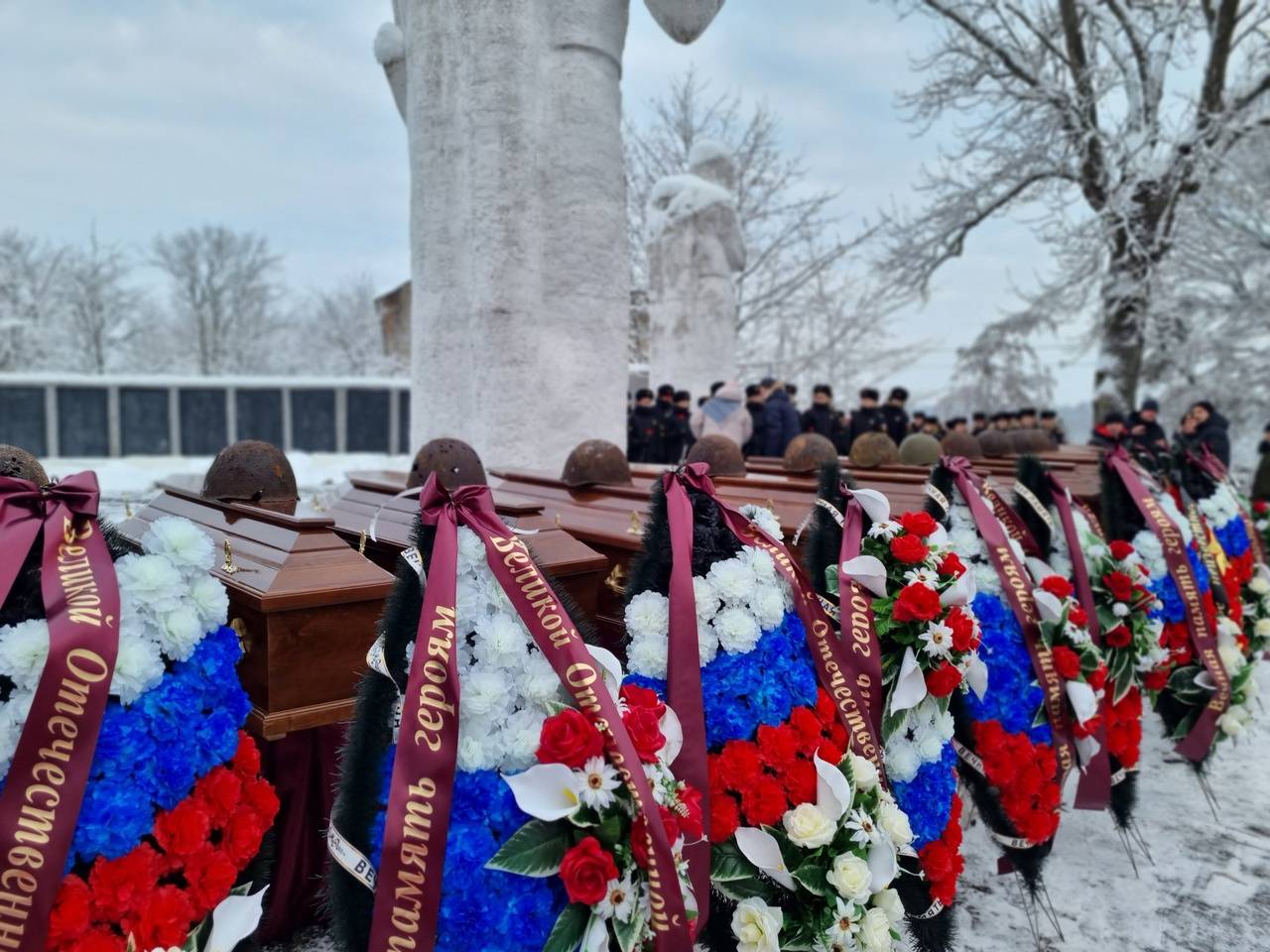 В Багратионовском округе перезахоронены останки 153 защитников Отечества. Траурные мероприятия прошли 30 ноября в поселке Корнево, у мемориала, в братской могиле которого захоронено более двух тысяч участников боёв Великой Отечественной войны.