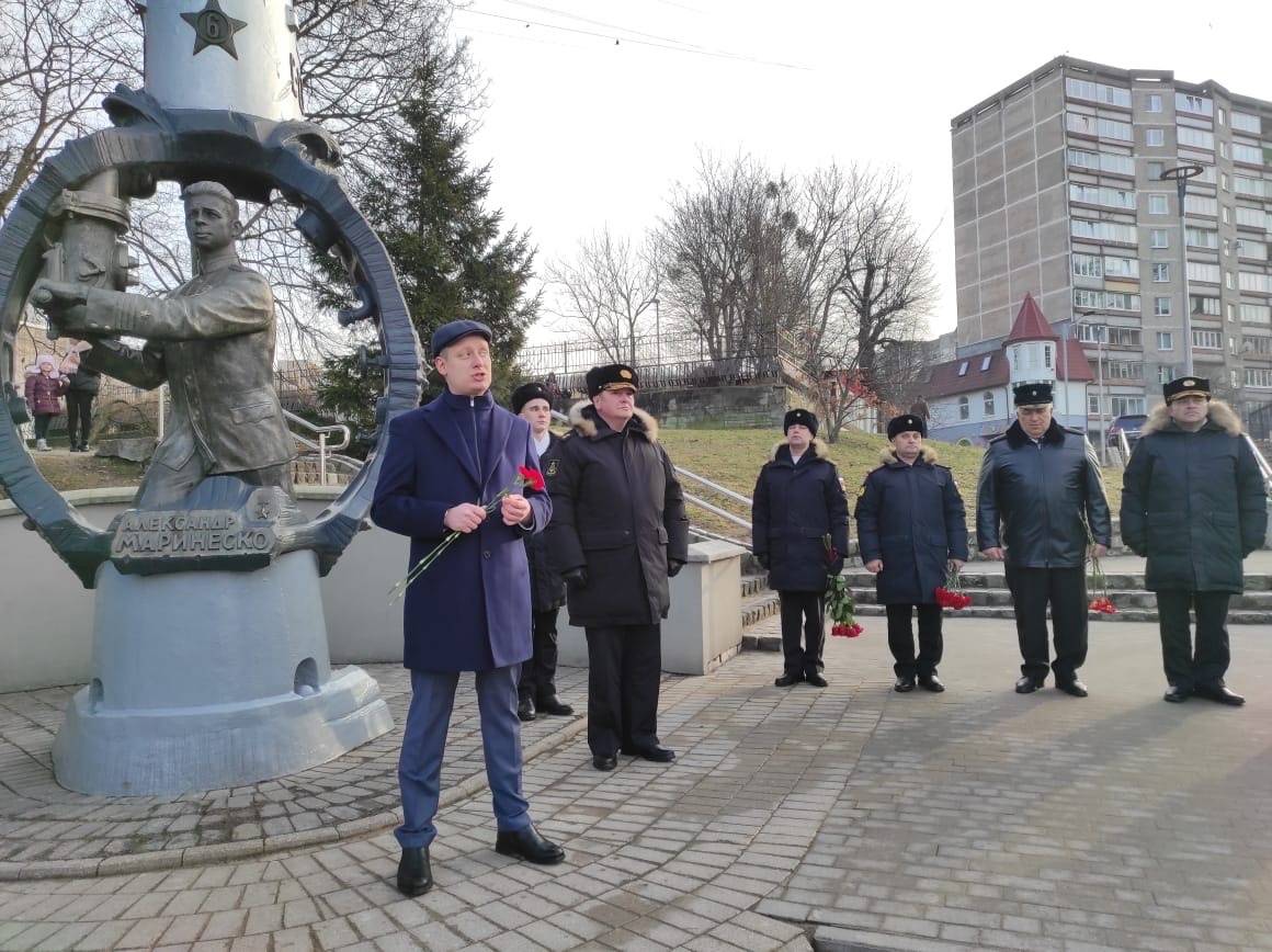 Собравшиеся возложили цветы к подножию памятника А.И. Маринеско и отдали воинские почести прославленному подводнику.