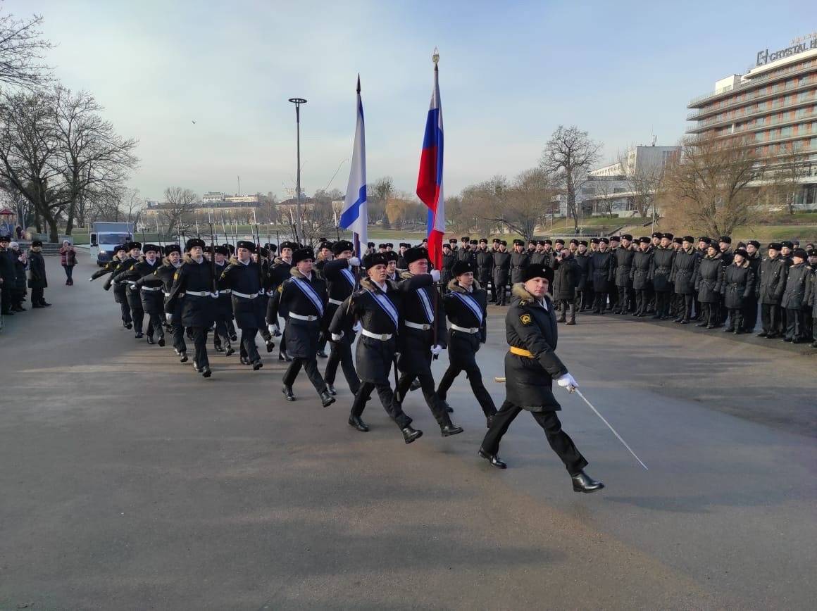 Завершился митинг прохождением роты почётного караула и общей фотографией с командующим ДКБФ.