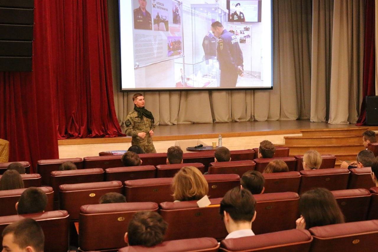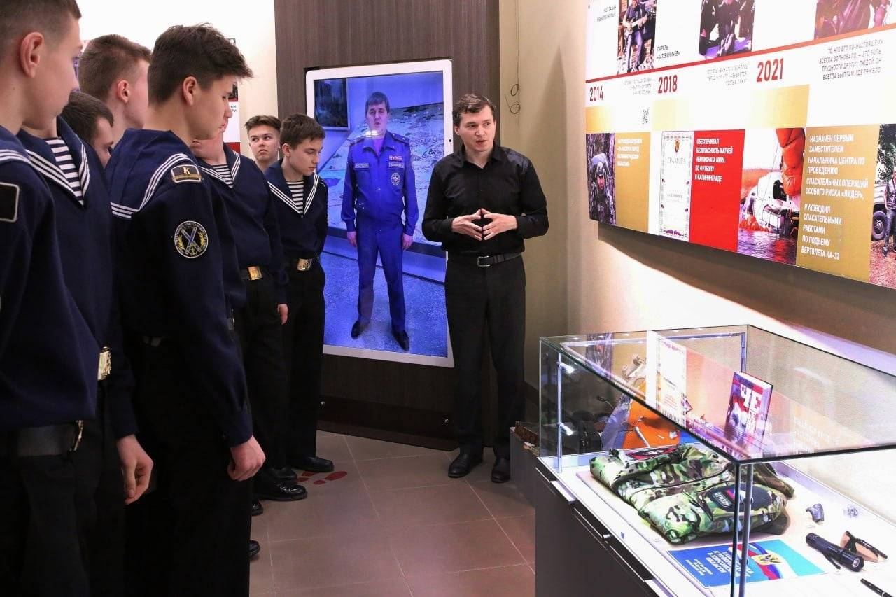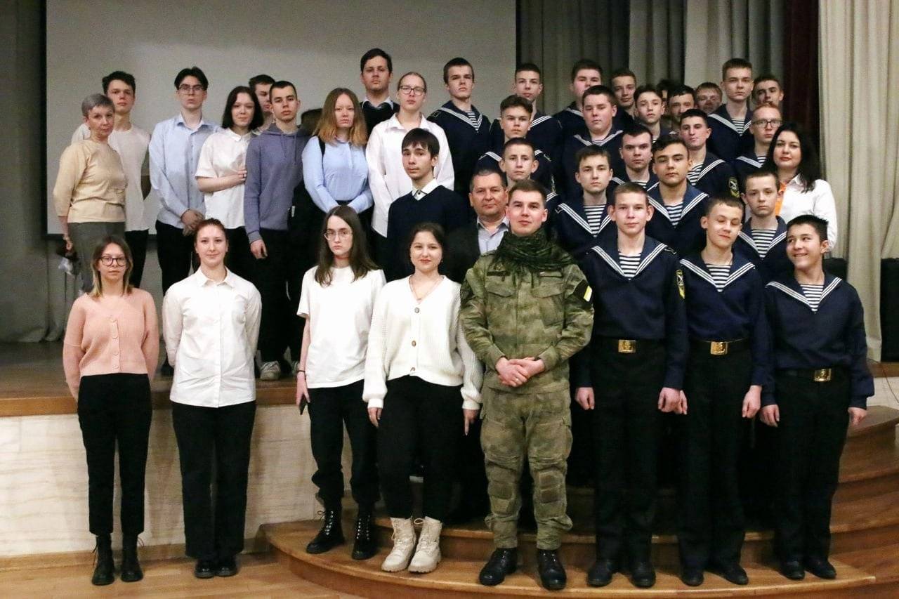 На презентации комплекта выступил доброволец СВО, руководитель центра подготовки к ЕГЭ «Логос» Николай Иванченко. Он провёл лекцию кадетам морского корпуса Андрея Первозванного и ученикам калининградской школы №2.