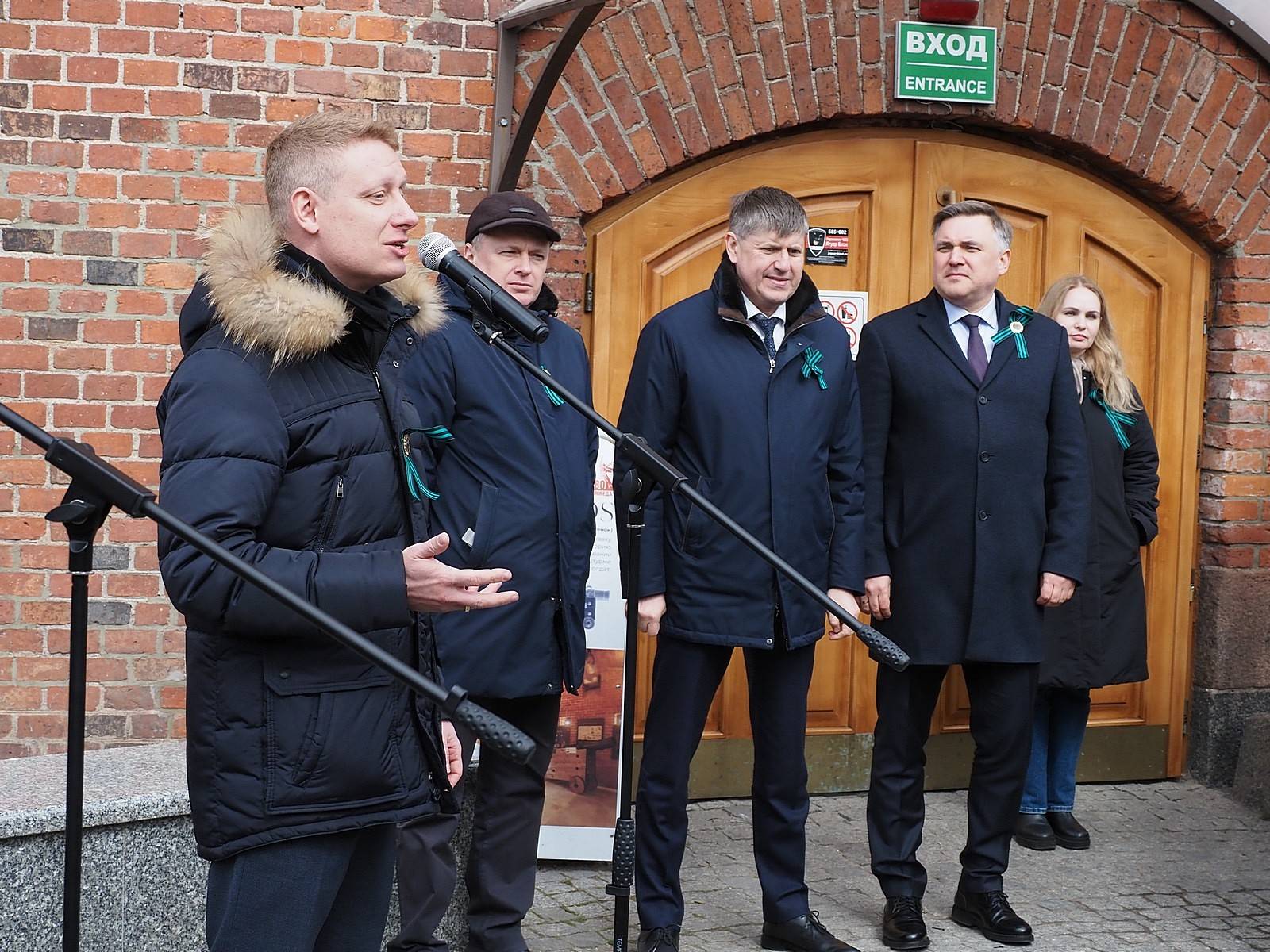 Почетными гостями Музея янтаря сегодня стали заместитель полномочного представителя Президента Российской Федерации в Северо-Западном федеральном округе Роман Викторович Балашов, председатель законодательного собрания Калининградской области Андрей Михайлович Кропоткин, министр по культуре и туризму Калининградской области, председатель Российского военно-исторического общества в Калининградской области Андрей Викторович Ермак и представитель МИД России в Калининграде Сергей Александрович Белов.