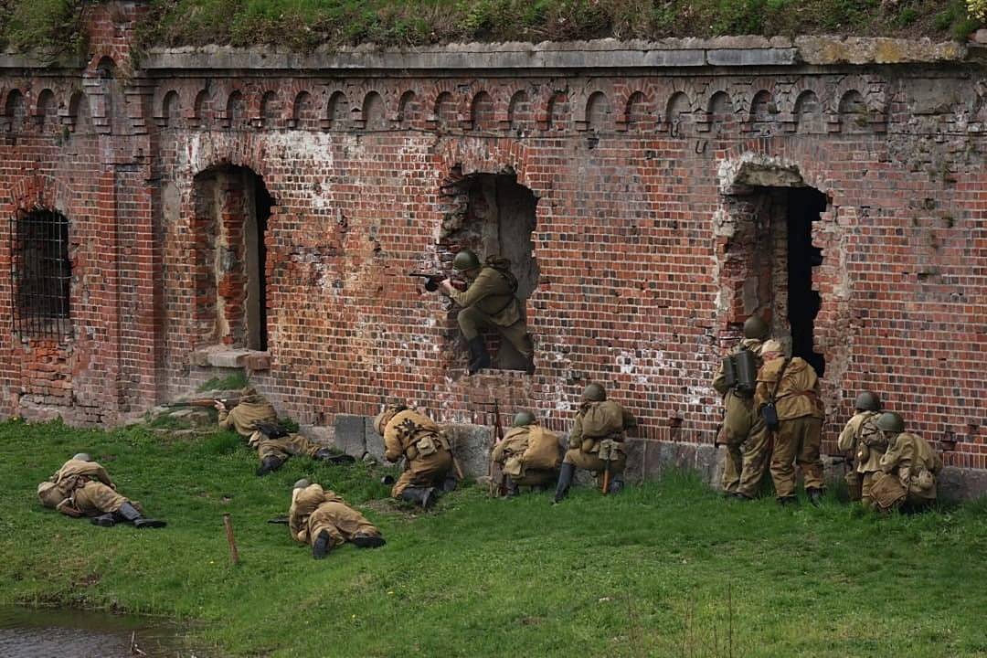 Мероприятие началось с митинга и традиционного возложения цветов к памятнику советским воинам. Сразу после дани памяти погибшим при защите Отечества, участники реконструкции воссоздали эпизод штурма форта №5.