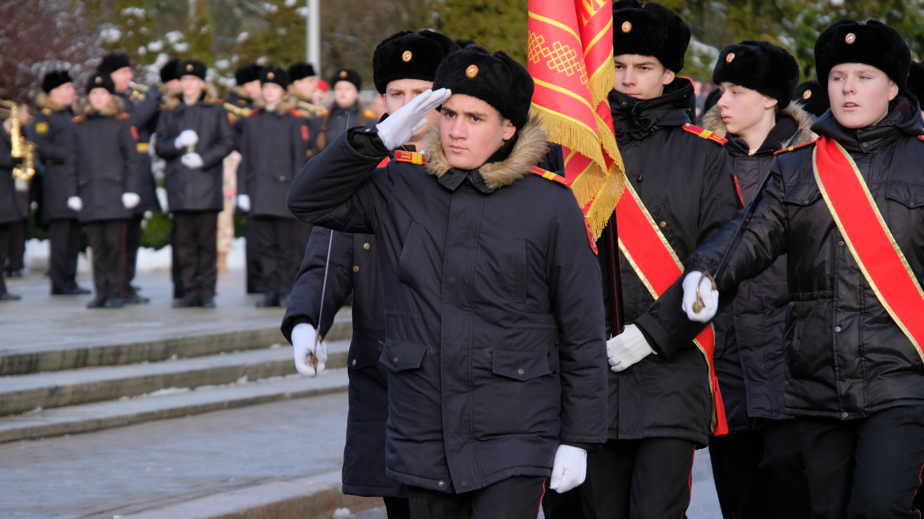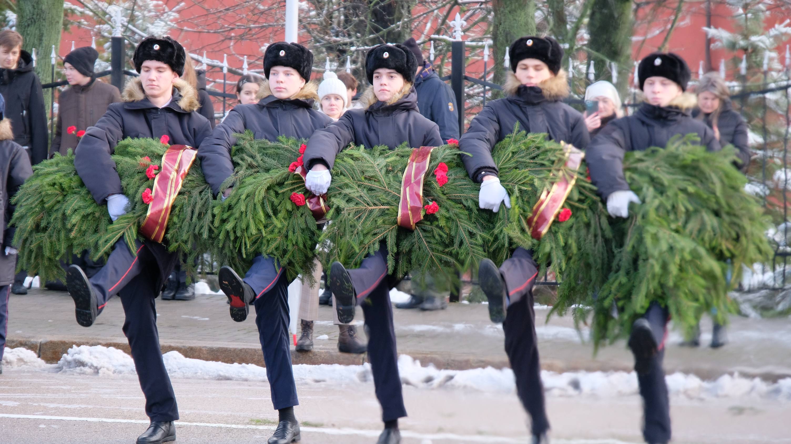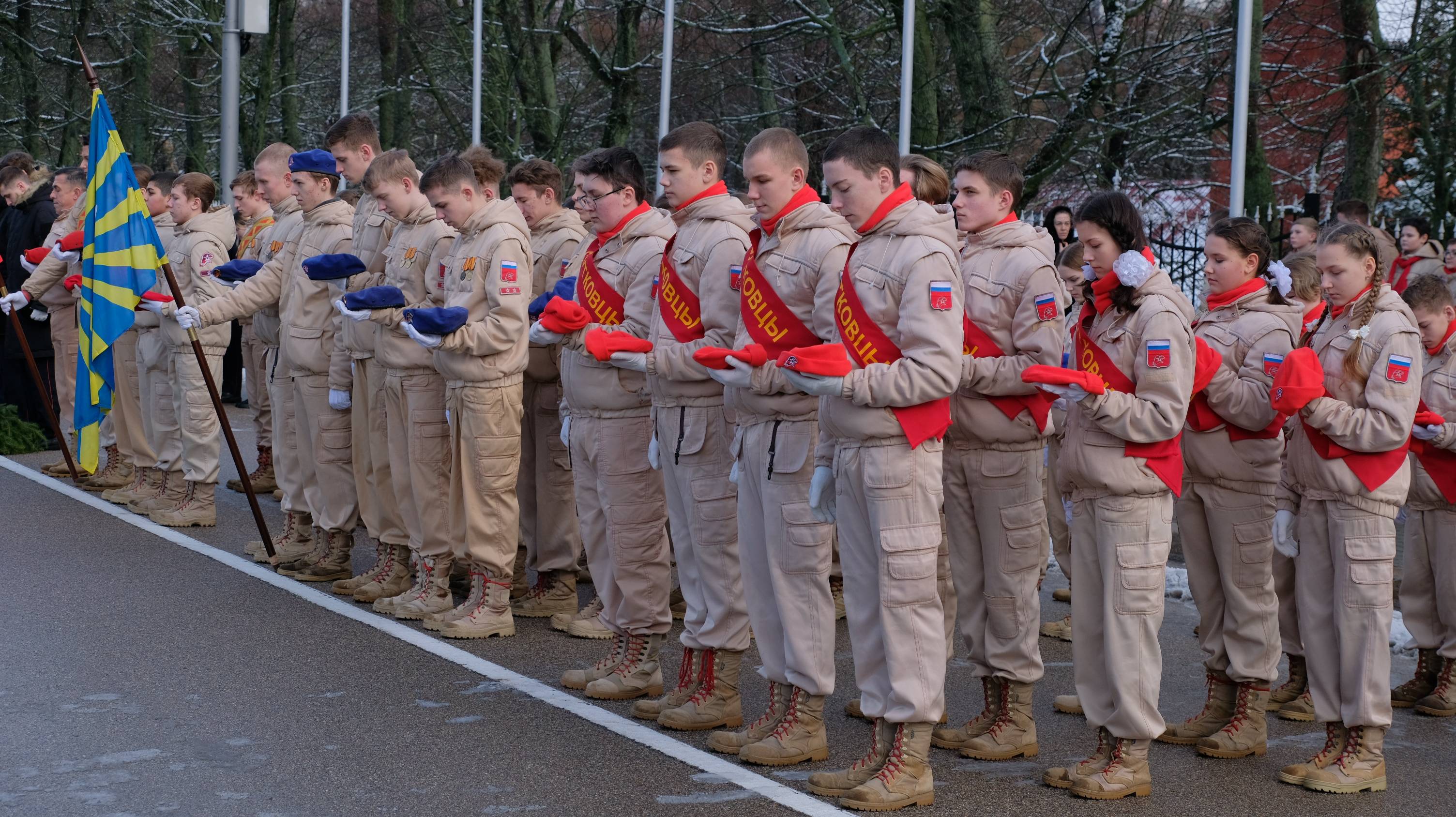 Кадеты и юнармейцы подразделения Калининградского пограничного института ФСБ России, Калининградского высшего военно-морского училища имени. Ф.Ф. Ушакова завершили мероприятие маршем.
