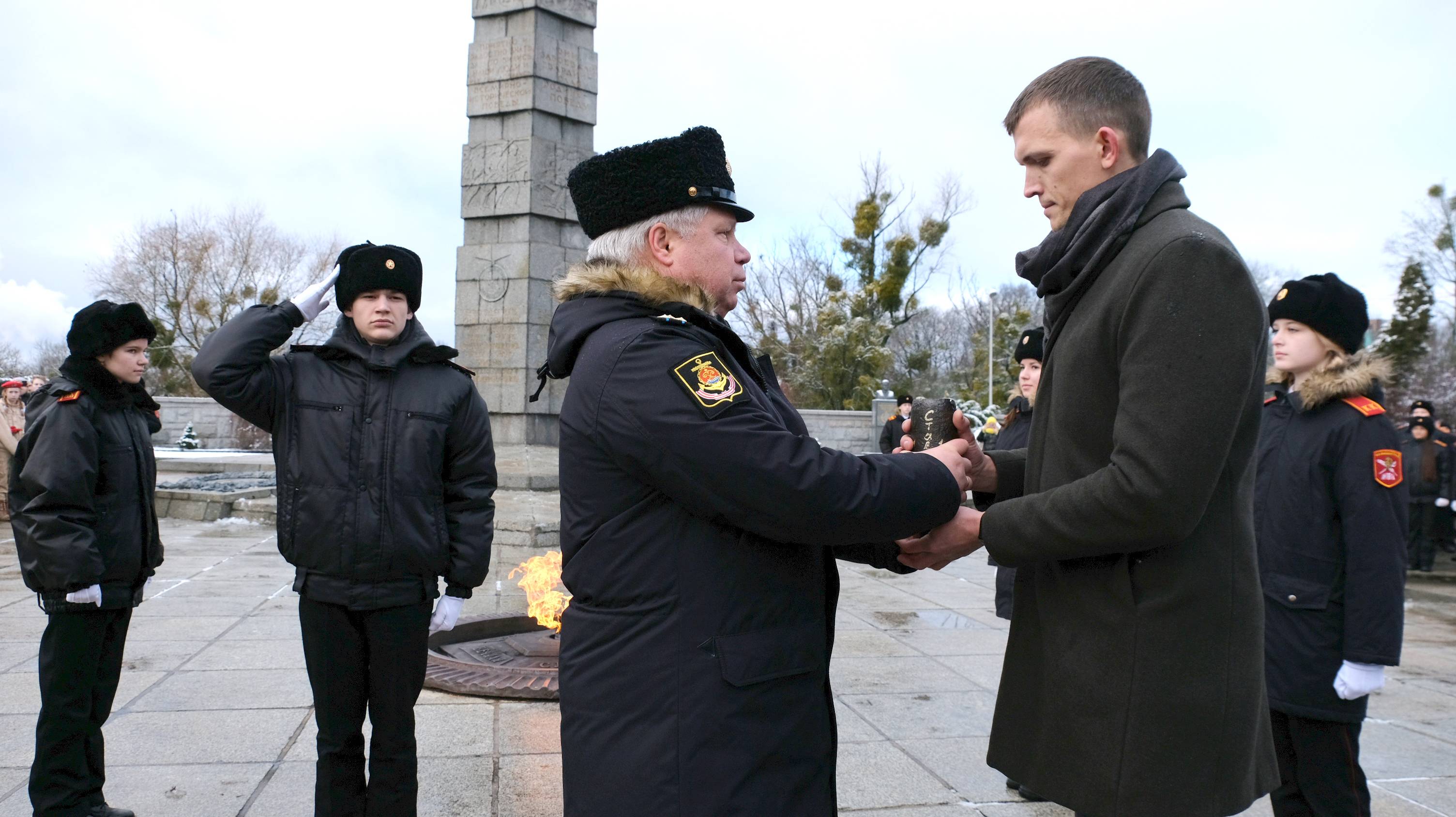 В Калининграде у мемориала 1200 воинам-гвардейцам состоялось мероприятие, направленное на сохранение исторической правды о подвиге советских воинов, защищавших Сталинград, битве, ставшей переломным моментом Великой Отечественной войны 1941-1945 годов.