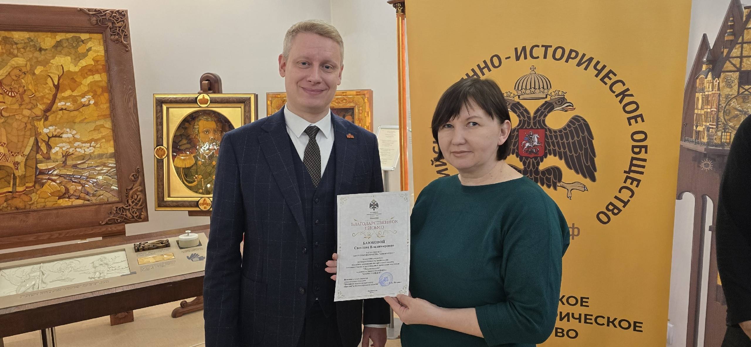 26 января , в Музее янтаря, состоялась церемония вручения билетов новым членам регионального отделения РВИО, а также благодарственных писем активным участникам мероприятий организуемых РВИО.