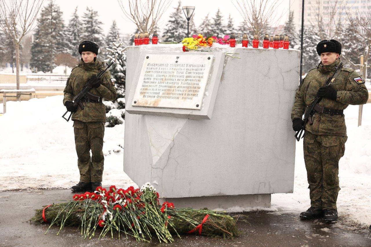18 февраля в Калининграде на набережной генерала Карбышева состоялось торжественное мероприятие, посвящённое памяти Героя Советского Союза, генерал-лейтенанта инженерных войск Дмитрия Михайловича Карбышева.
