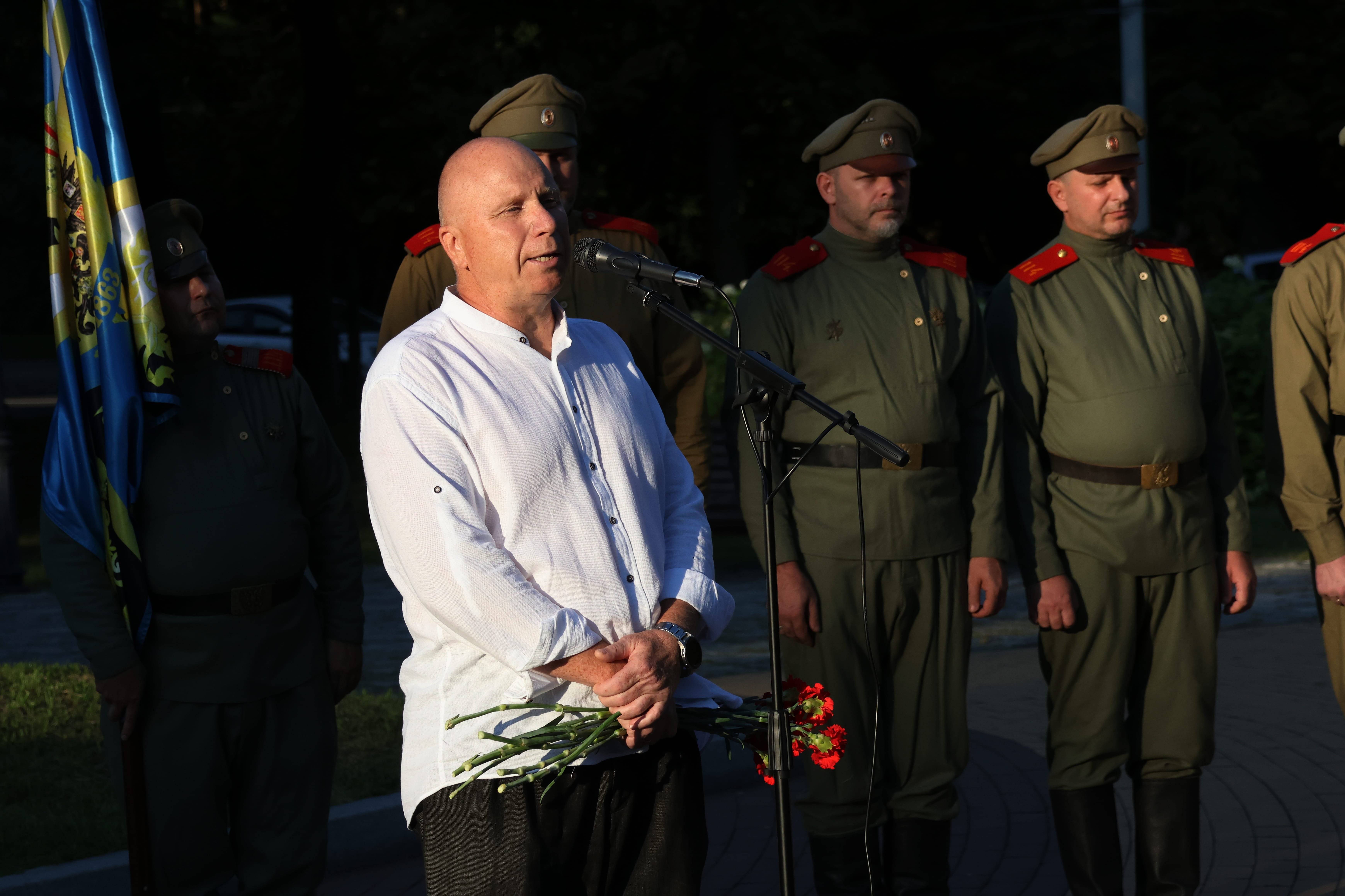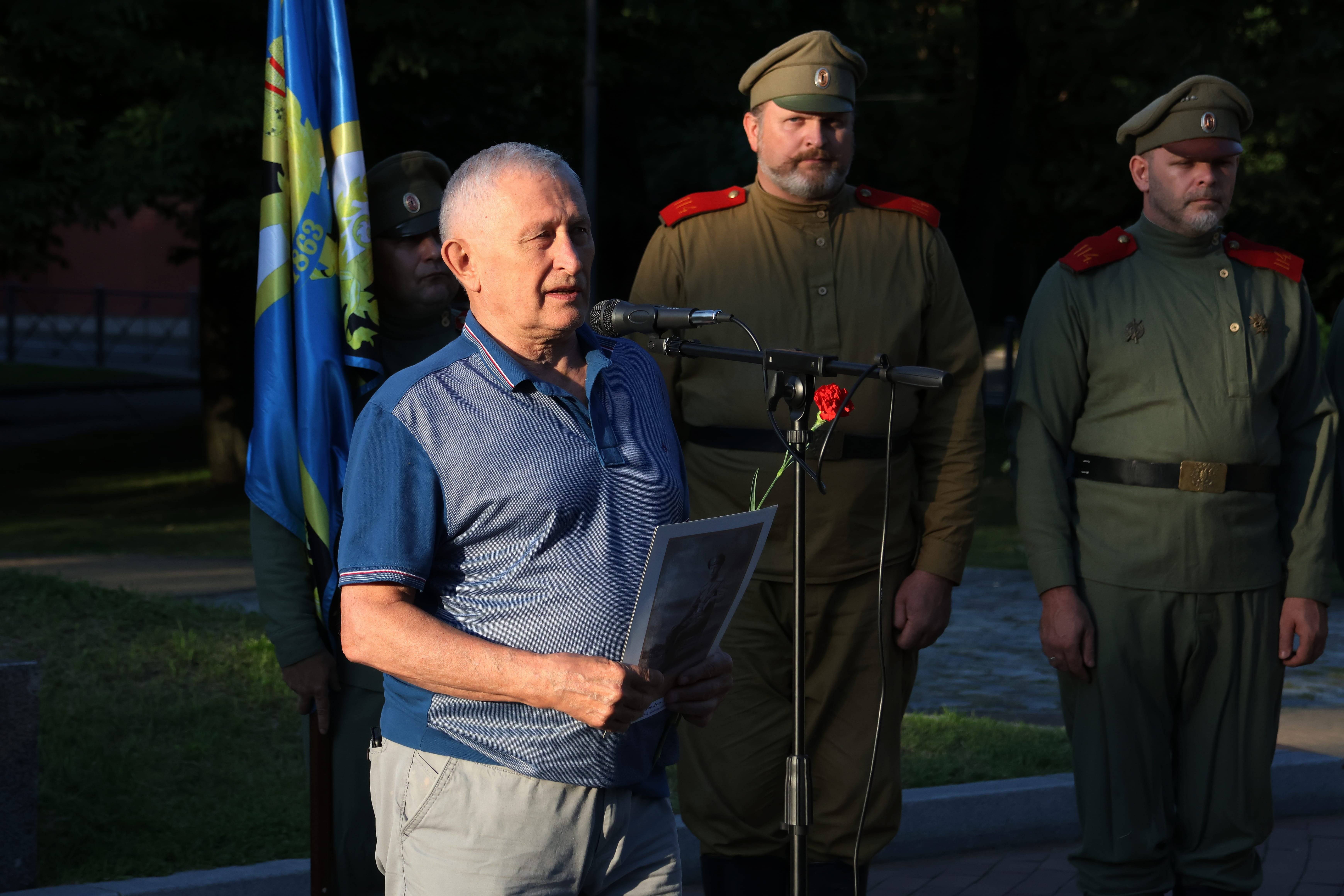 Перед собравшимися у памятника Героям Первой мировой войны выступил Председатель Российского военно-исторического общества в Калининградской области, министр по культуре и туризму Калининградской области Андрей Ермак. Он призвал помнить уроки той страшной войны и не забывать о русских воинах, отдавших свои жизни за Родину.