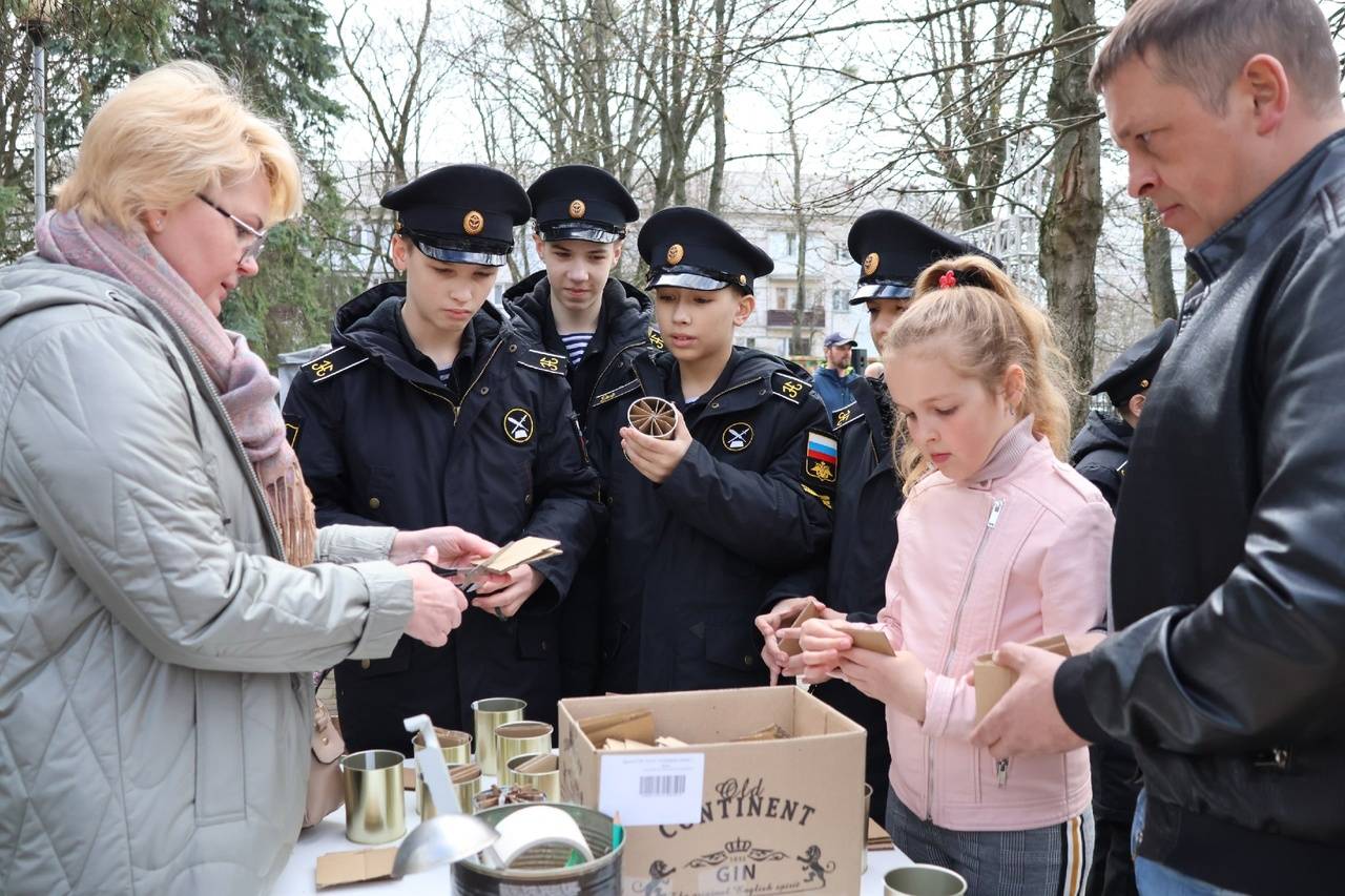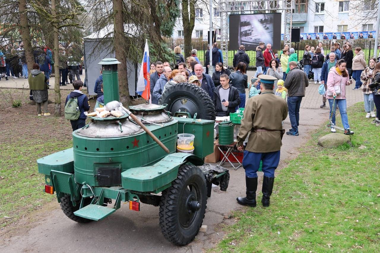 В течение мероприятия пришедшие могли посетить интерактивные площадки и мастер-классы (изготовление свечей, плетение маскировочных сетей), а также полевую кухню.