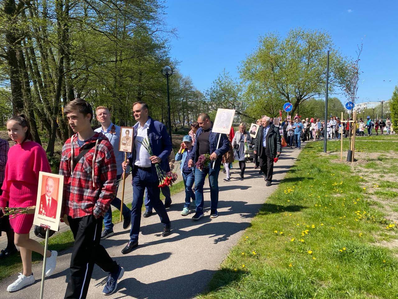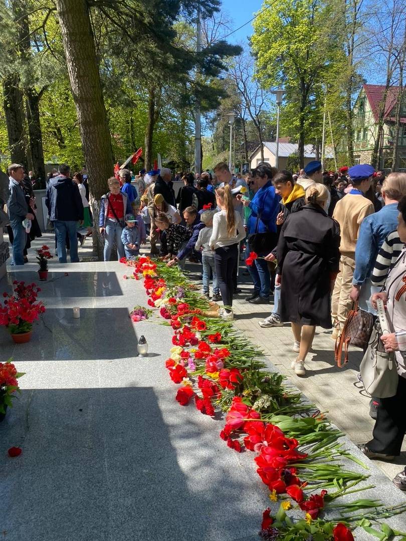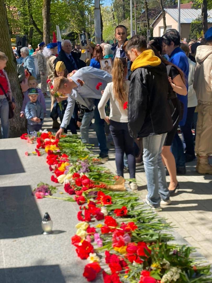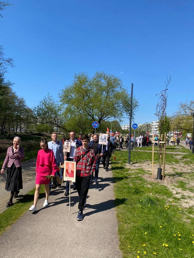 В Калининграде прошли праздничные мероприятия в честь Дня Победы. Во всех частях города люди объединяются и несут цветы и портреты своих родственников - участников Великой Отечественной войны к памятникам и братским могилам советских воинов.