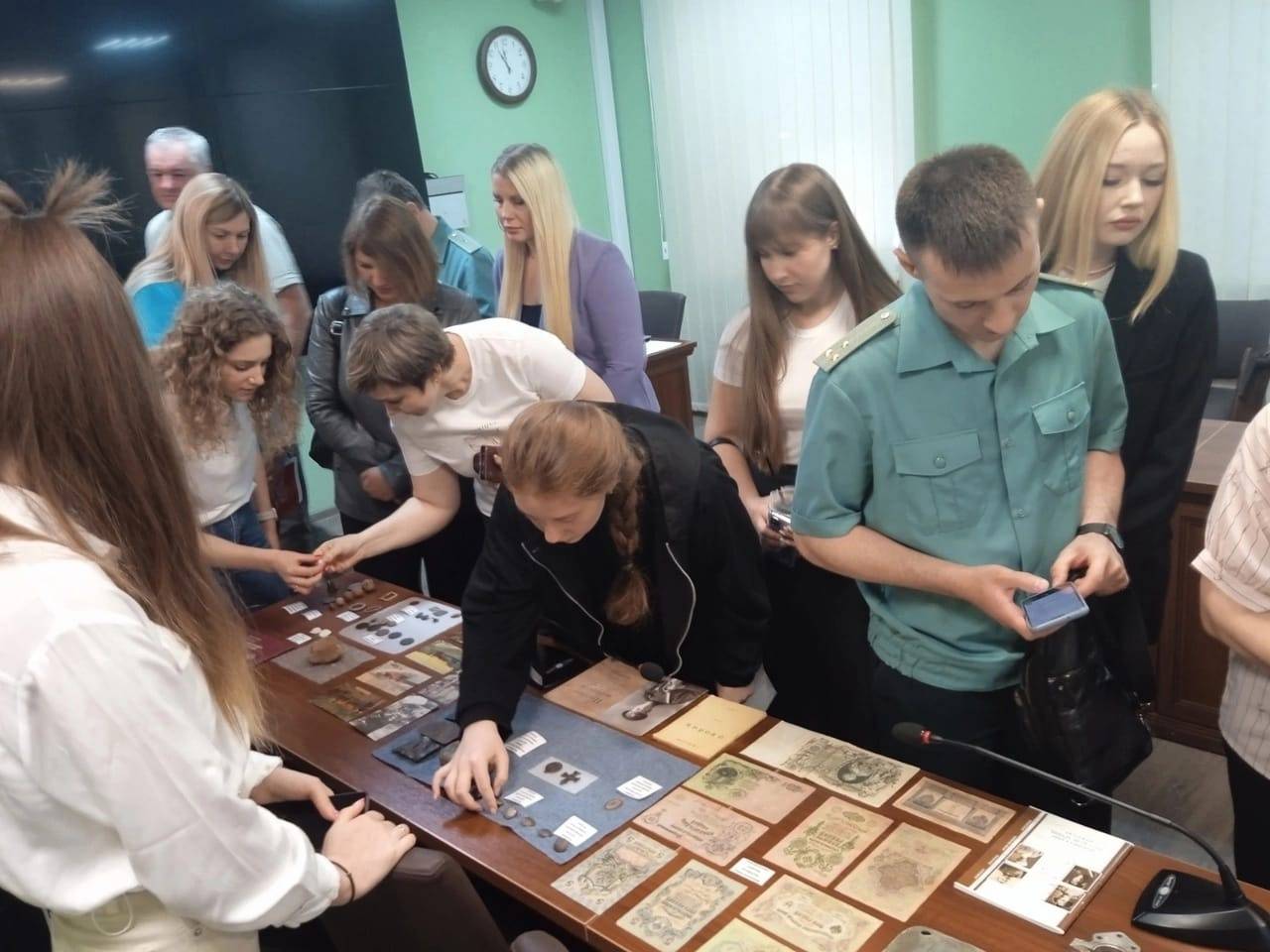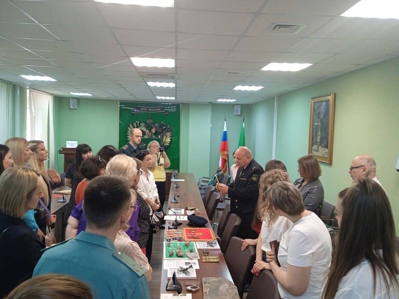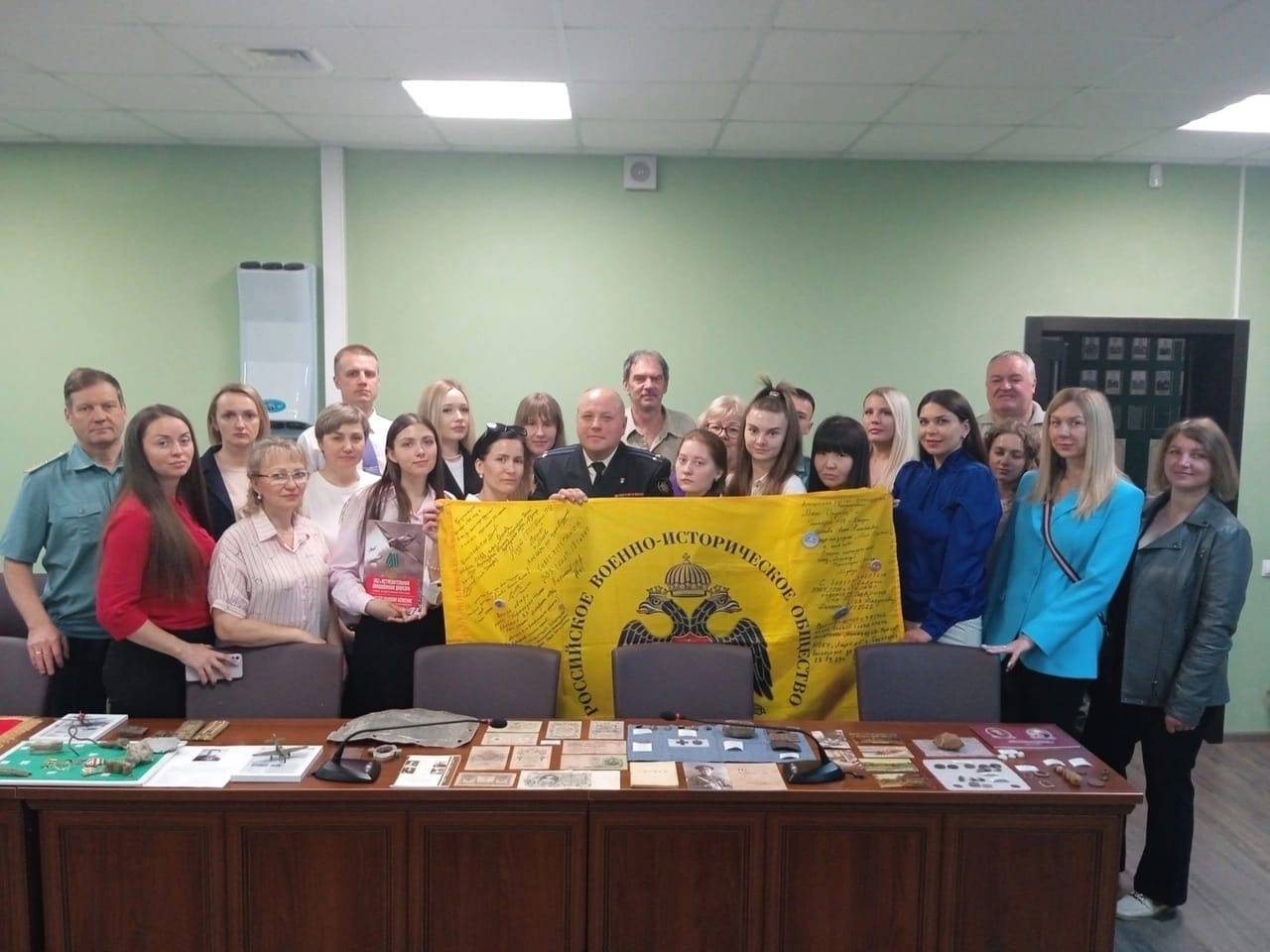 Сотрудникам таможни были представлены элементы выставки, которую члены творческой группы "Авиация 3-го Белорусского фронта" демонстрируют на проводимых ими мероприятиях. В частности, монеты и предметы амуниции периода Семилетней войны. Предметы амуниции, свинцовые пули и фрагмент ядра, найденные на поле Фридландского сражения 1807 года. Русские медные монеты времён Отечественной войны 1812 года и дореволюционные открытки на тему этой войны. Георгиевский крест 4-й степени и Георгиевская медаль 4-й степени "За храбрость", предметы амуниции, бумажные деньги периода Первой мировой войны. Фрагменты советских самолётов, найденных поисковиками на территории нашей области. И многое другое. Подготовил выставку член РО РВИО и творческой группы Игорь Евгеньевич Дуплинский.