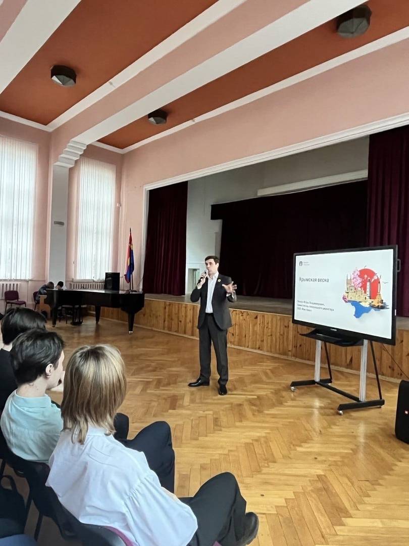 В Калининградском лицее №1 прошла лекция, приуроченная к 10-й годовщине воссоединения Крыма и России.
