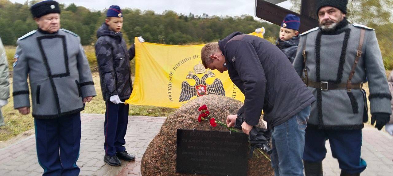 Сегодня в Краснознаменске (Калининградская область) был открыт обновлённый памятный знак, установленный на месте, где 15 декабря 1914 года ротмистр Бушнёв Владимир Бенедиктович, во время боя за мост через реку Инструч, повел в атаку на немецкие пулеметы спешившихся кавалеристов. Мост был взят, но героический ротмистр погиб в бою... Знак был установлен РВИО. На открытии присутствовали: исполнительный директор регионального отделения РВИО в Калининградской области Константин Петунин, председатель совета РВИО в Калининградской области Геннадий Кретинин и Глава муниципального образования Виктор Макаров.Сегодня в Краснознаменске был открыт обновлённый памятный знак, установленный на месте, где 15 декабря 1914 года ротмистр Бушнёв Владимир Бенедиктович, во время боя за мост через реку Инструч, повел в атаку на немецкие пулеметы спешившихся кавалеристов. Мост был взят, но героический ротмистр погиб в бою... Знак был установлен РВИО. На открытии присутствовали: исполнительный директор регионального отделения РВИО в Калининградской области Константин Петунин, председатель совета РВИО в Калининградской области Геннадий Кретинин и Глава муниципального образования Виктор Макаров.