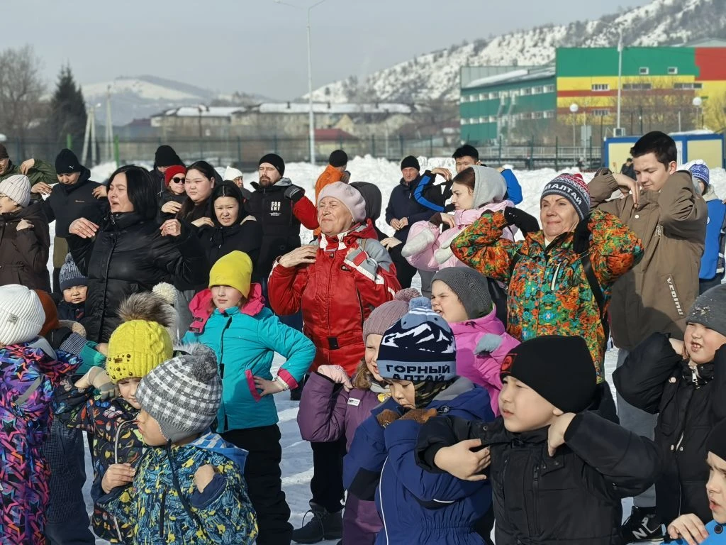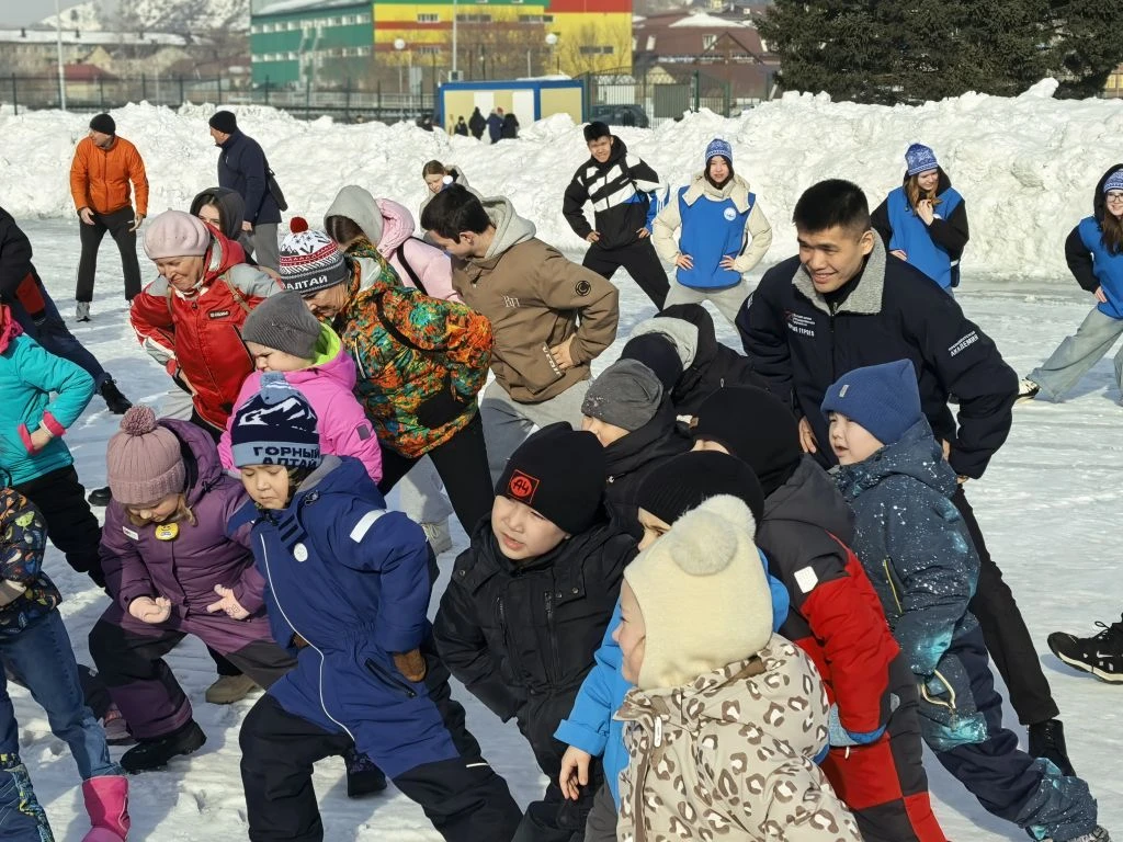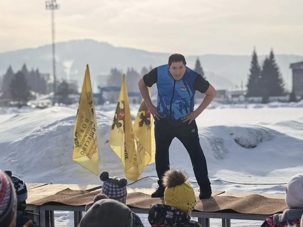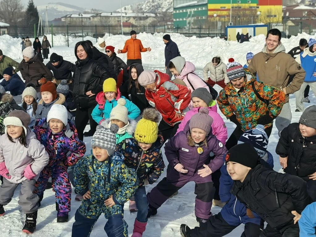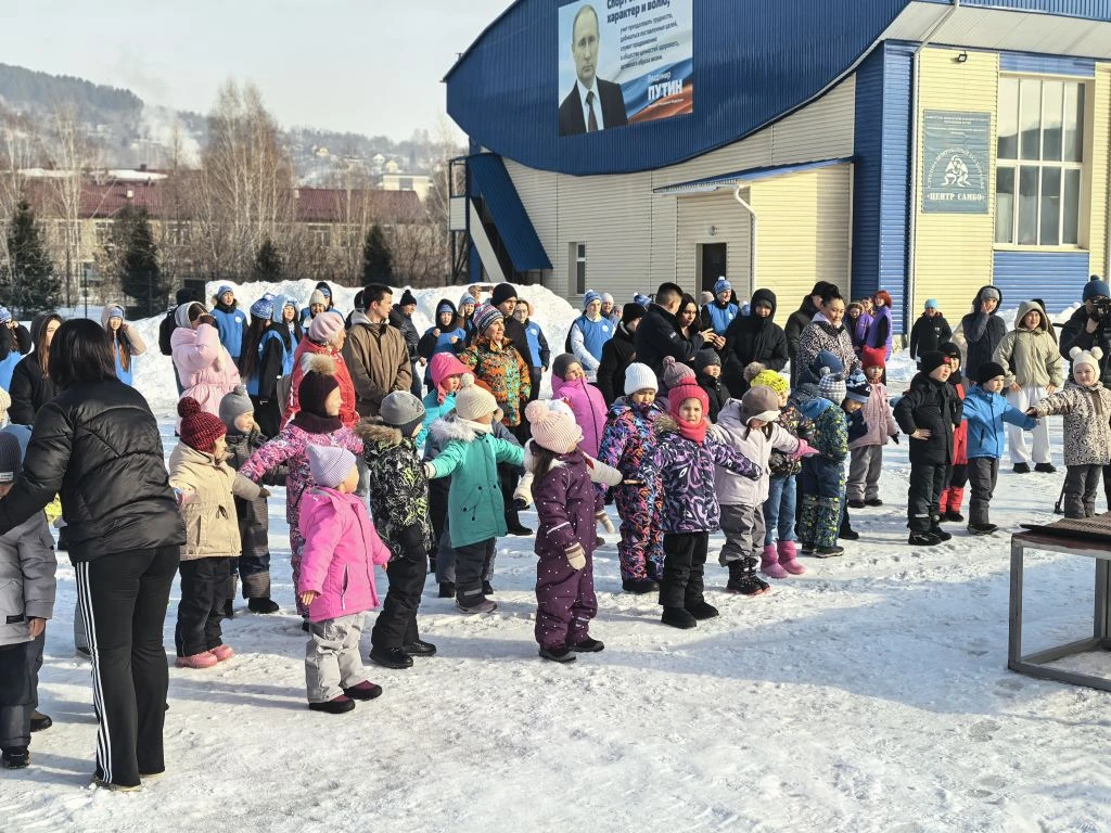 Зарядку провел Виталий Юрьевич Уин - двукратный чемпион России и призёр чемпионатов России по борьбе Самбо , чемпион мира по борьбе самбо, обладатель Кубка мира, почётный гражданин Республики Алтай, Заслуженный мастер спорта России.